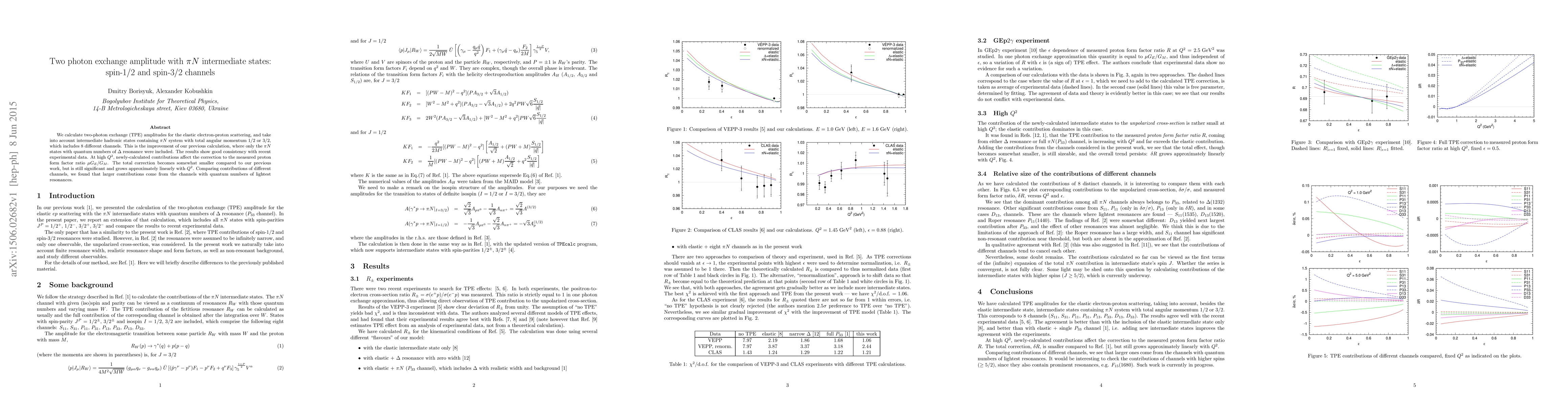 We calculate two-photon exchange (TPE) amplitudes for the elastic electron-proton scattering, and take into account intermediate hadronic states containing \pi N system with total angular momentum 1/2 or 3/2, which includes 8 different channels. This is the improvement of our previous calculation, where only the \pi N states with quantum numbers of \Delta(1232) resonance were included. The results show good consistency with recent experimental data. At high Q^2, newly-calculated contributions affect the correction to the measured proton form factor ratio \mu G_E/G_M. The total correction becomes somewhat smaller compared to our previous work, but is still significant and grows approximately linearly with Q^2. Comparing contributions of different channels, we found that larger contributions come from the channels with quantum numbers of lightest resonances.