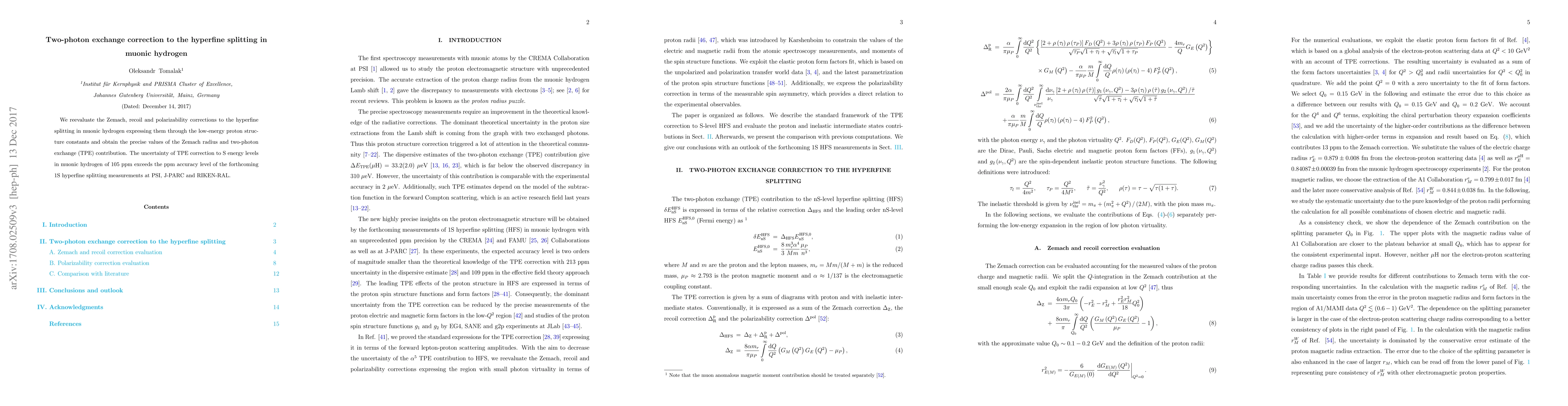 We reevaluate the Zemach, recoil and polarizability corrections to the hyperfine splitting in muonic hydrogen expressing them through the low-energy proton structure constants and obtain the precise values of the Zemach radius and two-photon exchange (TPE) contribution. The uncertainty of TPE correction to S energy levels in muonic hydrogen of 105 ppm exceeds the ppm accuracy level of the forthcoming 1S hyperfine splitting measurements at PSI, J-PARC and RIKEN-RAL.