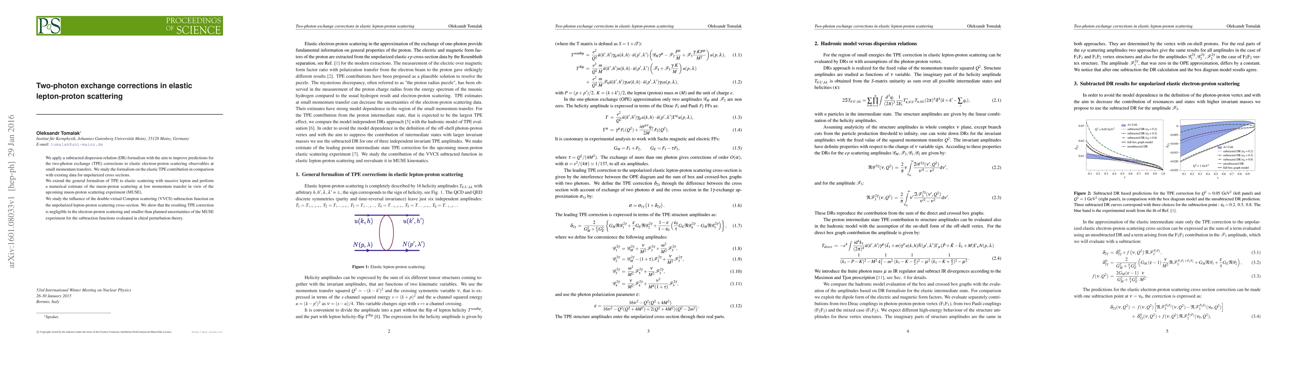 This paper applies a subtracted dispersion relation to improve predictions for two-photon exchange corrections in elastic electron-proton scattering, finding that these corrections are negligible for electron-proton scattering and smaller than MUSE experiment uncertainties. The study also extends the formalism to muon-proton scattering and assesses the impact of double-virtual Compton scattering subtraction functions.