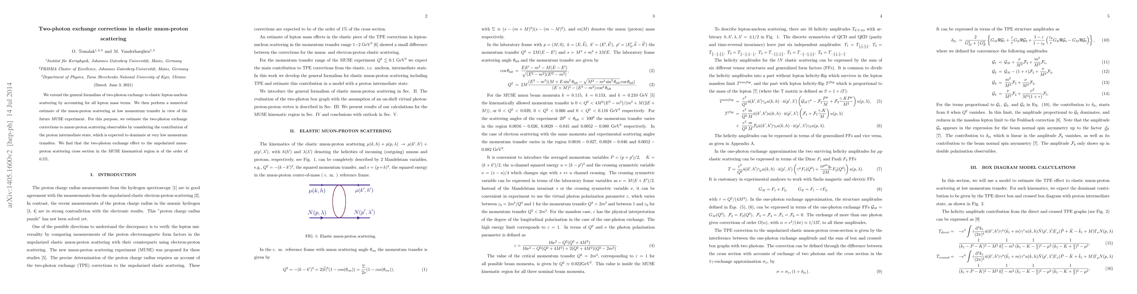 This paper extends the formalism for two-photon exchange to elastic muon-proton scattering, estimating its effect at low momentum transfer. The results show that two-photon exchange corrections contribute about 0.5% to the unpolarized scattering cross section in the MUSE experiment's kinematical region.