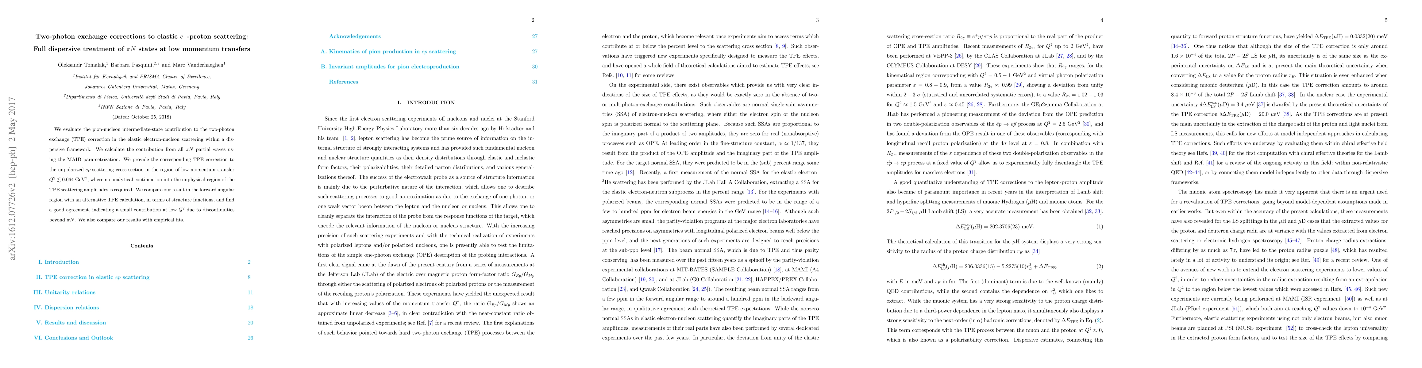 This paper evaluates the pion-nucleon intermediate-state contribution to two-photon exchange corrections in elastic electron-proton scattering using a full dispersive treatment. The study provides TPE corrections to the unpolarized $e p$ scattering cross section for low momentum transfers, showing good agreement with alternative calculations and empirical fits.