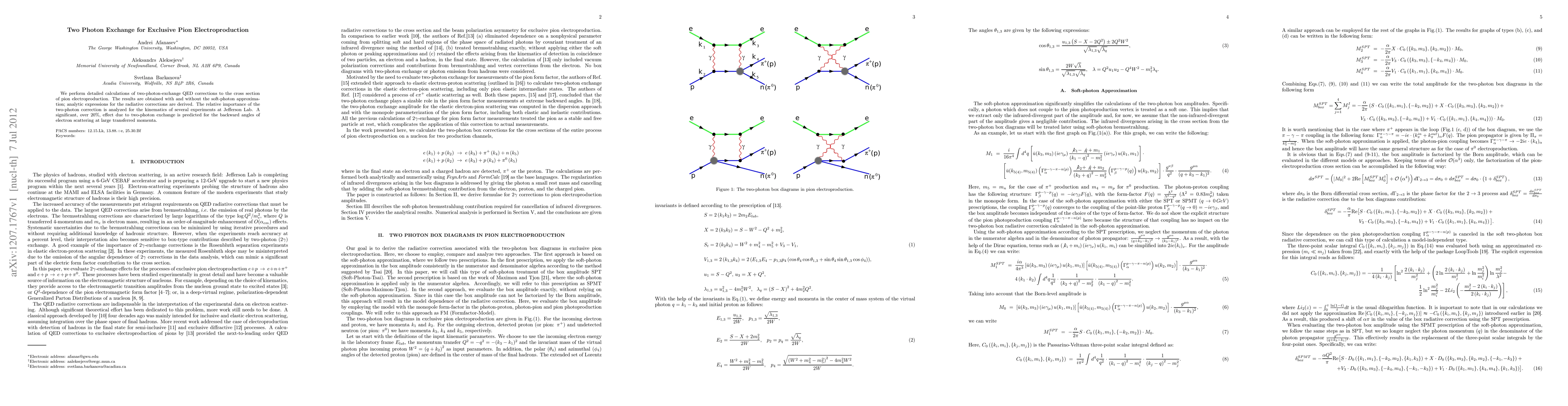 This paper calculates two-photon-exchange QED corrections for exclusive pion electroproduction, deriving analytic expressions for radiative corrections and analyzing their relative importance in various experimental kinematics. A significant over 20% effect is predicted due to two-photon exchange at large transferred momenta and backward electron scattering angles.