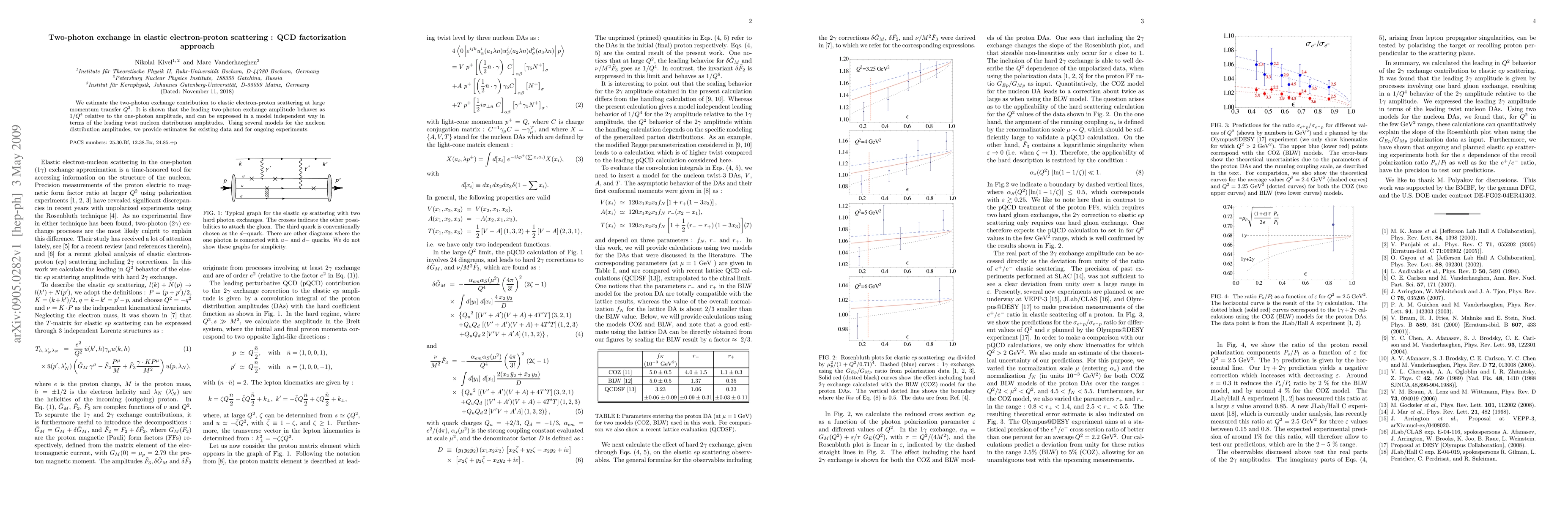 The paper presents a detailed calculation of the leading Q² behavior of the two-photon exchange contribution to elastic electron-proton scattering, using a QCD factorization approach and expressing it in terms of leading twist nucleon distribution amplitudes.