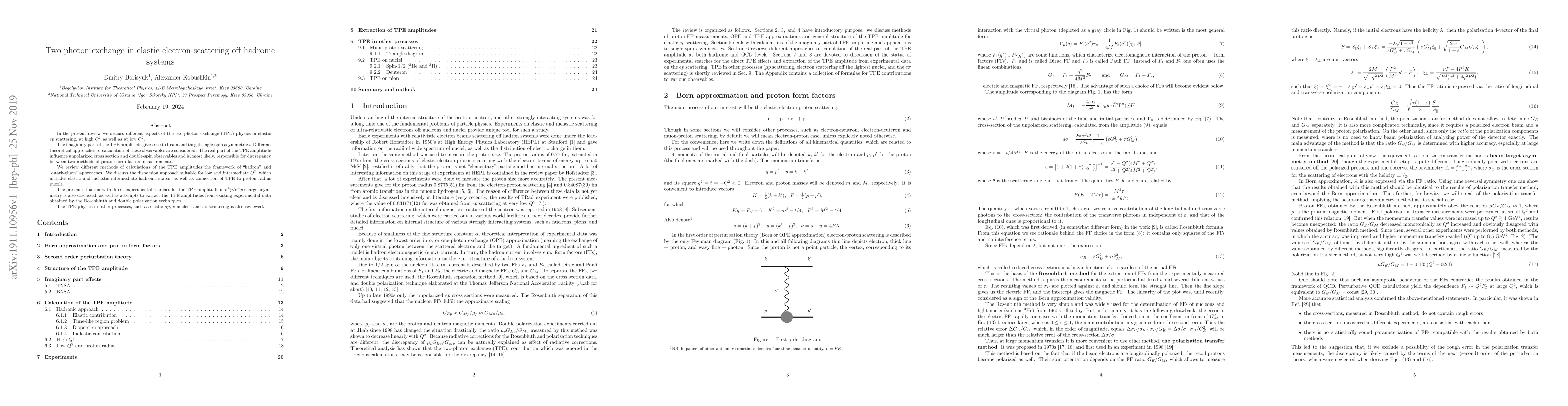 In the present review we discuss different aspects of the two-photon exchange (TPE) physics in elastic $ep$ scattering, at high $Q^2$ as well as at low $Q^2$. The imaginary part of the TPE amplitude gives rise to beam and target single-spin asymmetries. Different theoretical approaches to calculation of these observables are considered. The real part of the TPE amplitude influence unpolarized cross section and double-spin observables and is, most likely, responsible for discrepancy between two methods of proton form factors measurements. We review different methods of calculations of the TPE amplitudes the framework of "hadron" and "quark-gluon" approaches. We discuss the dispersion approach suitable for low and intermediate $Q^2$, which includes elastic and inelastic intermediate hadronic states, as well as connection of TPE to proton radius puzzle. The present situation with direct experimental searches for the TPE amplitude in $e^+p/e^-p$ charge asymmetry is also discussed, as well as attempts to extract the TPE amplitudes from existing experimental data obtained by the Rosenbluth and double polarization techniques. The TPE physics in other processes, such as elastic $\mu p$, $e$-nucleus and $e\pi$ scattering is also reviewed.