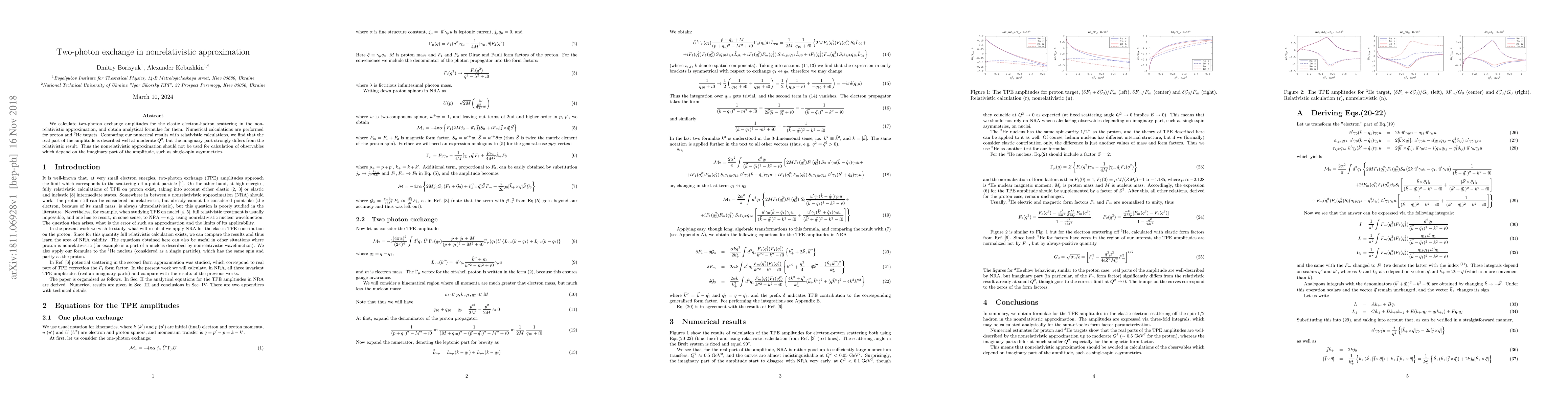 Researchers calculated two-photon exchange amplitudes in nonrelativistic approximation for electron-hadron scattering and found it describes the real part well but not the imaginary part at moderate Q^2, which is important for single-spin asymmetries.