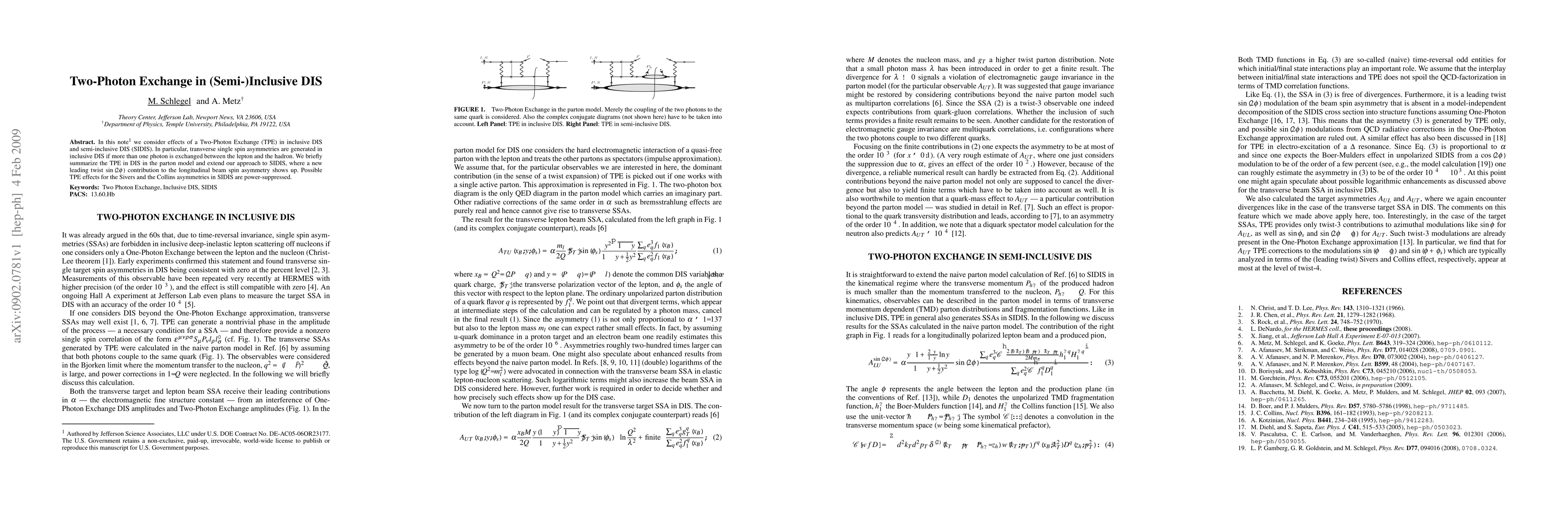 In this note we consider effects of a Two-Photon Exchange (TPE) in inclusive DIS and semi-inclusive DIS (SIDIS). In particular, transverse single spin asymmetries are generated in inclusive DIS if more than one photon is exchanged between the lepton and the hadron. We briefly summarize the TPE in DIS in the parton model and extend our approach to SIDIS, where a new leading twist $\sin(2\phi)$ contribution to the longitudinal beam spin asymmetry shows up. Possible TPE effects for the Sivers and the Collins asymmetries in SIDIS are power-suppressed.