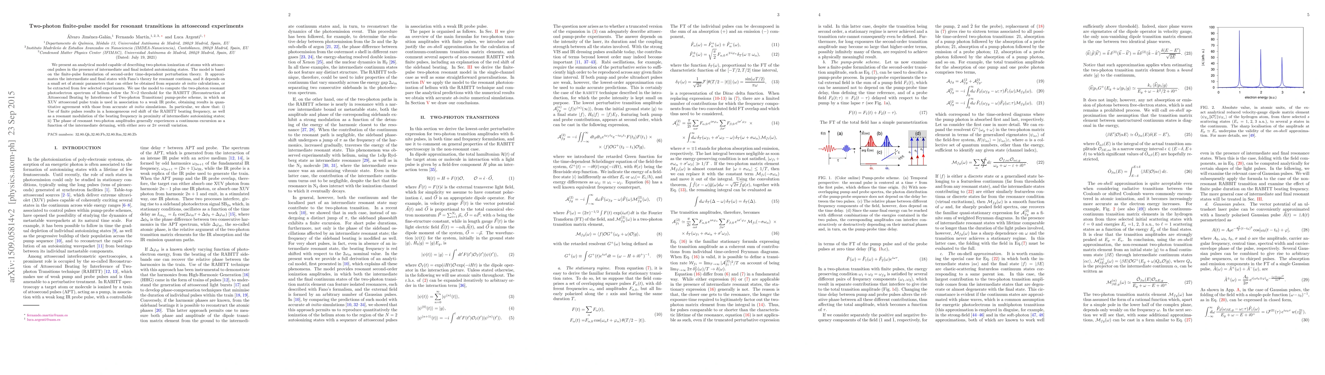 This paper introduces an analytical model for two-photon ionization in attosecond experiments using finite-pulse perturbation theory, showing agreement with \emph{ab initio} simulations. It highlights the effects of finite pulses on RABITT schemes, including a red shift and resonant modulation of beating frequency near autoionizing states.