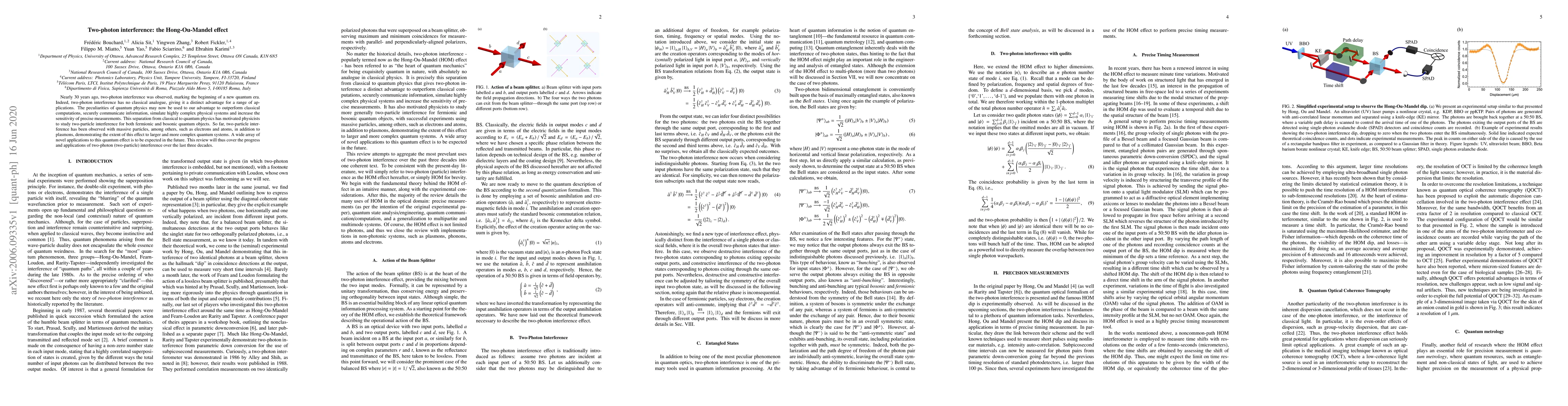 Nearly 30 years ago, two-photon interference was observed, marking the beginning of a new quantum era. Indeed, two-photon interference has no classical analogue, giving it a distinct advantage for a range of applications. The peculiarities of quantum physics may now be used to our advantage to outperform classical computations, securely communicate information, simulate highly complex physical systems and increase the sensitivity of precise measurements. This separation from classical to quantum physics has motivated physicists to study two-particle interference for both fermionic and bosonic quantum objects. So far, two-particle interference has been observed with massive particles, among others, such as electrons and atoms, in addition to plasmons, demonstrating the extent of this effect to larger and more complex quantum systems. A wide array of novel applications to this quantum effect is to be expected in the future. This review will thus cover the progress and applications of two-photon (two-particle) interference over the last three decades.