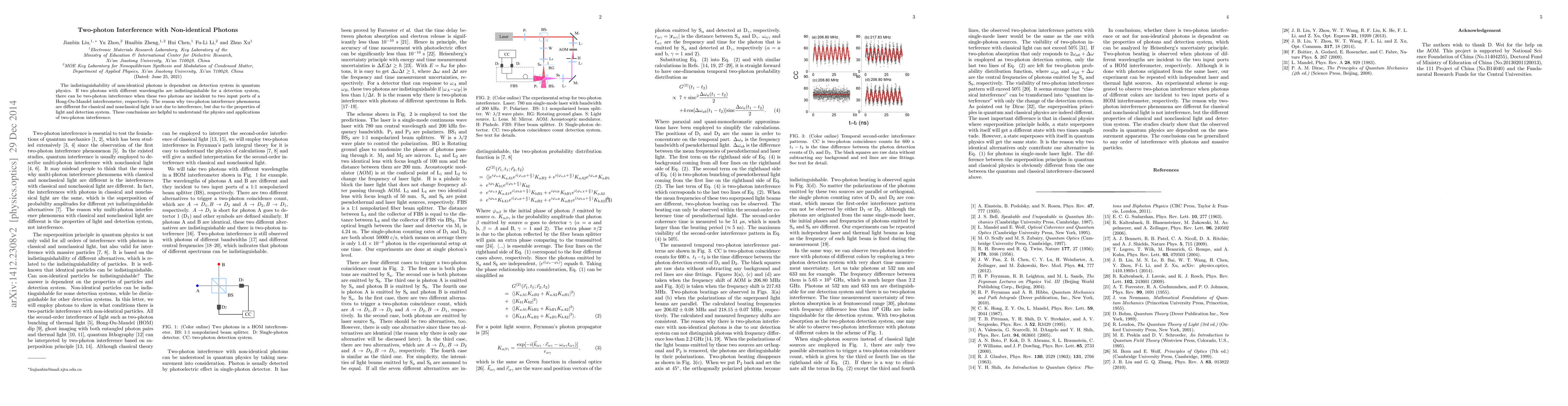 This paper investigates two-photon interference using non-identical photons in a Hong-Ou-Mandel interferometer, revealing that indistinguishability depends on the detection system. The study highlights differences in interference phenomena between classical and nonclassical light, emphasizing the role of light properties and detection systems.