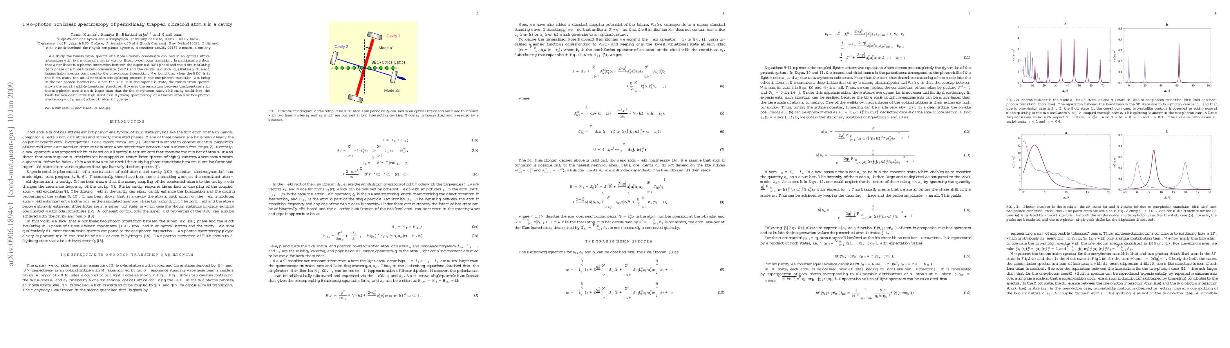 We study the transmission spectra of a Bose Einstein condensate confined in an optical lattice interacting with two modes of a cavity via nonlinear two-photon transition. In particular we show that a nonlinear two-photon interaction between the superfluid (SF) phase and the Mott insulating (MI) phase of a Bose-Einstein condensate (BEC) and the cavity field show qualitatively different transmission spectra compared to the one-photon interaction. We found that when the BEC is in the Mott state, the usual normal mode splitting present in the one-photon transition is missing in the two-photon interaction. When the BEC is in the superfluid state, the transmission spectra shows the usual multiple lorentzian structure. However the separation between the lorentzians for the two-photon case is much larger than that for the one-photon case. This study could form the basis for non-destructive high resolution Rydberg spectroscopy of ultracold atoms or two-photon spectroscopy of a gas of ultracold atomic hydrogen.