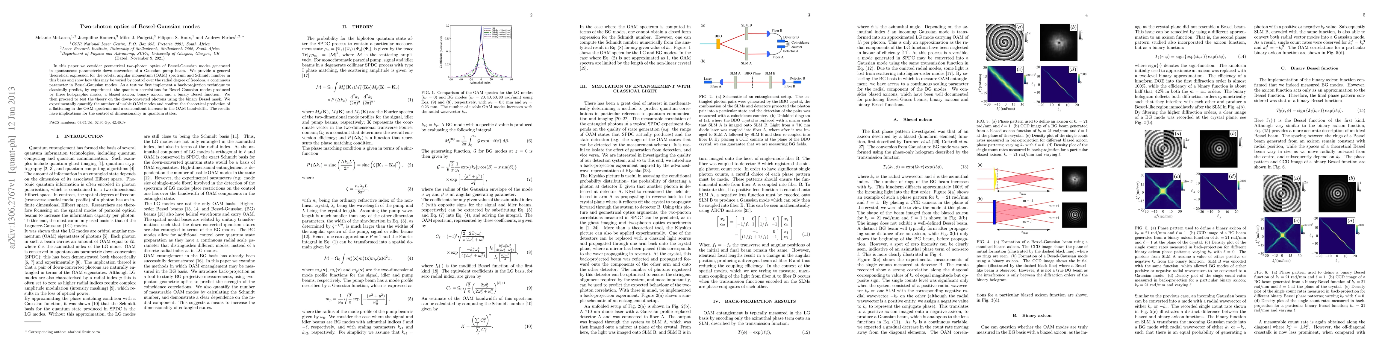 This paper explores the geometrical two-photon optics of Bessel-Gaussian modes produced through spontaneous parametric down-conversion. It provides a theoretical framework for the orbital angular momentum spectrum and Schmidt number, demonstrating control over the radial degree of freedom and validating the theory experimentally with various holographic masks.