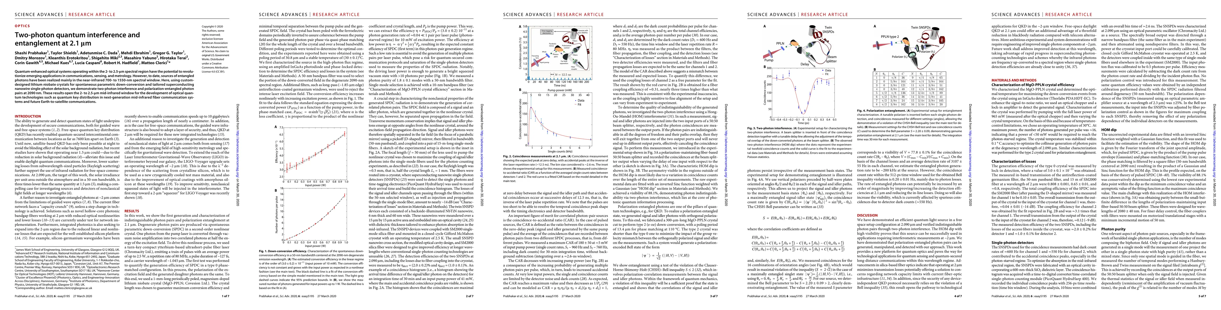 This paper demonstrates two-photon interference and polarization-entangled photon pairs at 2090 nm using lithium niobate crystals and superconducting nanowire detectors, opening the mid-infrared window for quantum technologies like quantum key distribution in next-generation fiber communication systems.