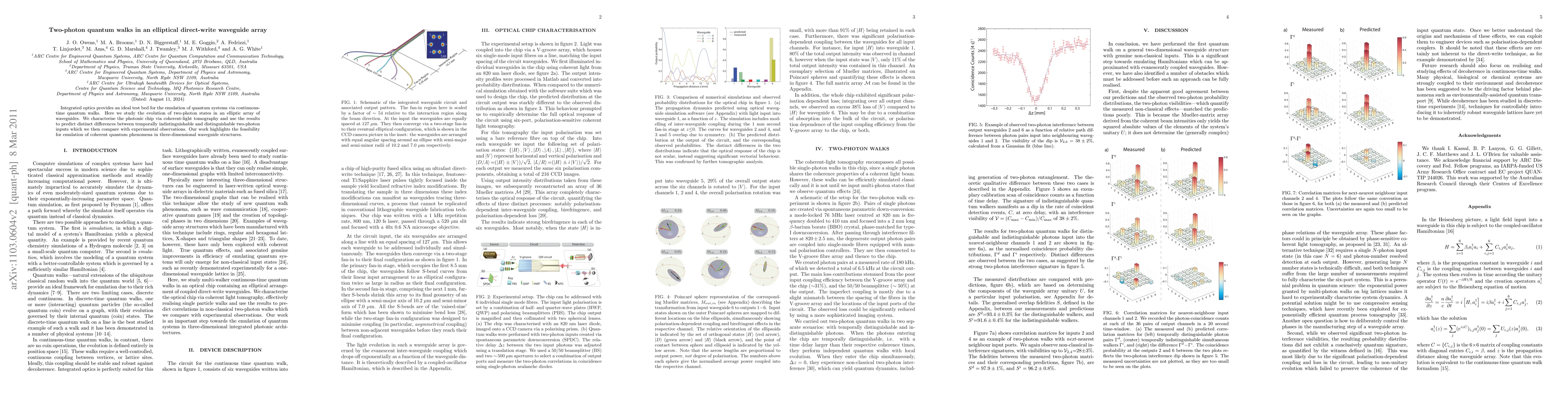 This paper investigates the emulation of quantum systems using two-photon quantum walks in an elliptical waveguide array. The authors characterize the photonic chip and predict differences in two-photon inputs, comparing theoretical predictions with experimental results to demonstrate the potential for emulating coherent quantum phenomena in 3D waveguide structures.
