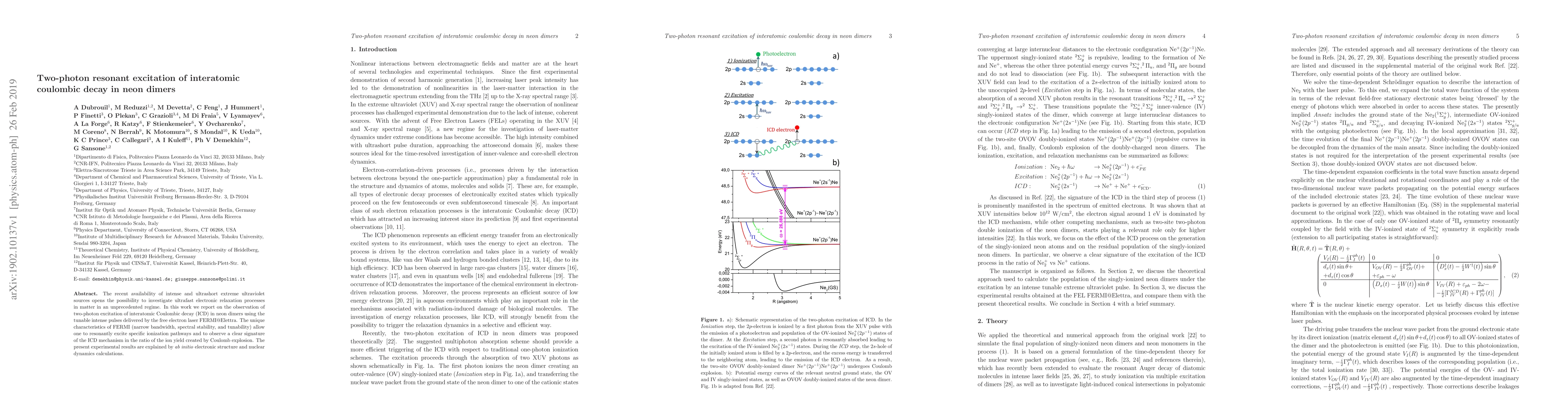 The recent availability of intense and ultrashort extreme ultraviolet sources opens the possibility to investigate ultrafast electronic relaxation processes in matter in an unprecedented regime. In this work we report on the observation of two-photon excitation of interatomic Coulombic decay (ICD) in neon dimers using the tunable intense pulses delivered by the free electron laser FERMI@Elettra. The unique characteristics of FERMI (narrow bandwidth, spectral stability, and tunability) allow one to resonantly excite specific ionization pathways and to observe a clear signature of the ICD mechanism in the ratio of the ion yield created by Coulomb explosion. The present experimental results are explained by \emph{ab initio} electronic structure and nuclear dynamics calculations.