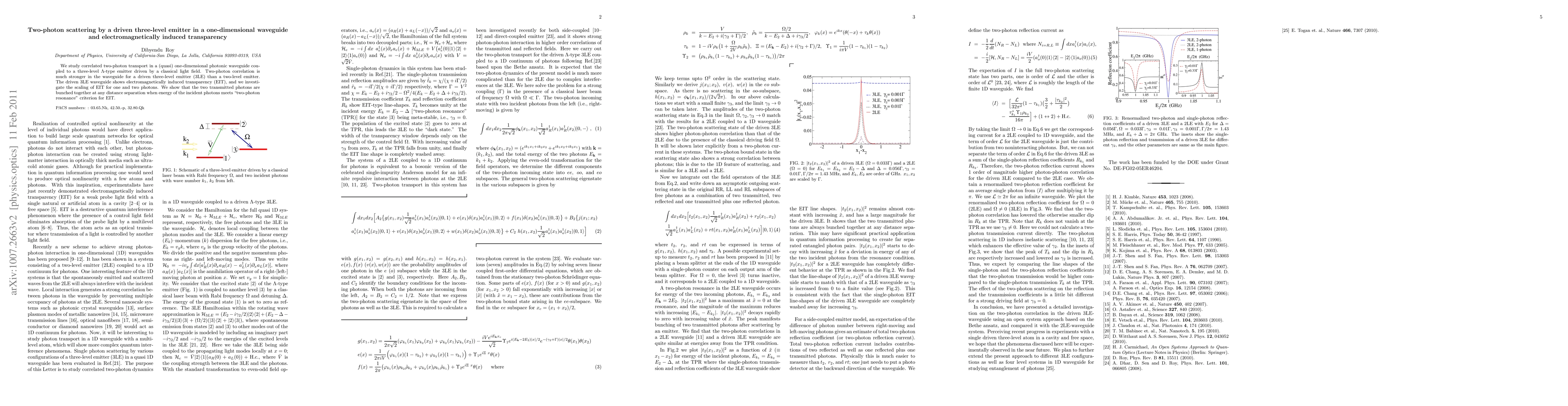 This paper investigates two-photon scattering in a one-dimensional waveguide coupled to a driven three-level emitter, demonstrating stronger two-photon correlations compared to a two-level emitter. It explores electromagnetically induced transparency (EIT) in the system and shows that two photons are bunched together when the incident photon energy meets the "two-photon resonance" criterion for EIT.