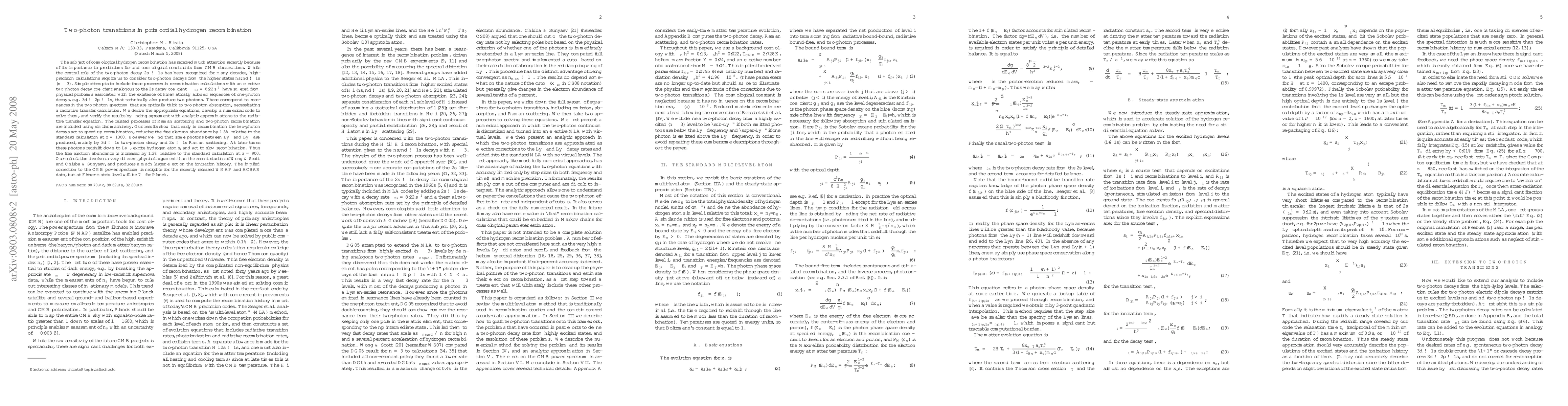 This paper investigates the impact of two-photon transitions in primordial hydrogen recombination, finding that higher state decays (ns,nd->1s) accelerate recombination early on but later produce photons that slow it down. The study develops a numerical code to solve radiative transfer equations and shows negligible correction to CMB power spectrum for current data but significant at Planck's Fisher matrix level.