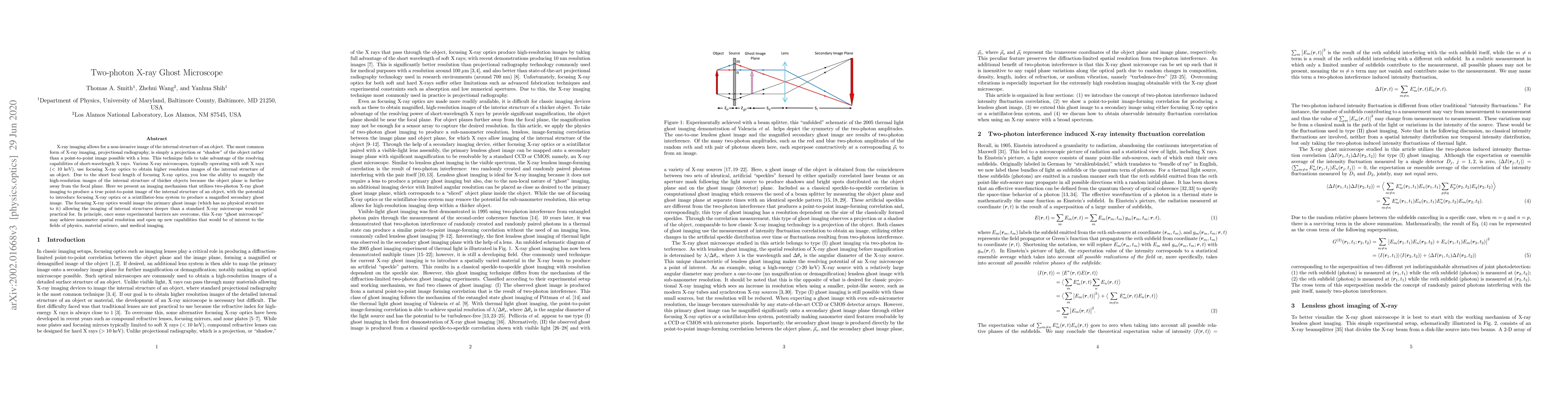 The paper introduces a novel two-photon X-ray ghost microscope that uses ghost imaging to produce high-resolution, point-to-point images of an object's internal structure, potentially surpassing the limitations of conventional X-ray microscopy. This method could enable deeper imaging and nanometer resolution, with applications in physics, material science, and medical imaging.