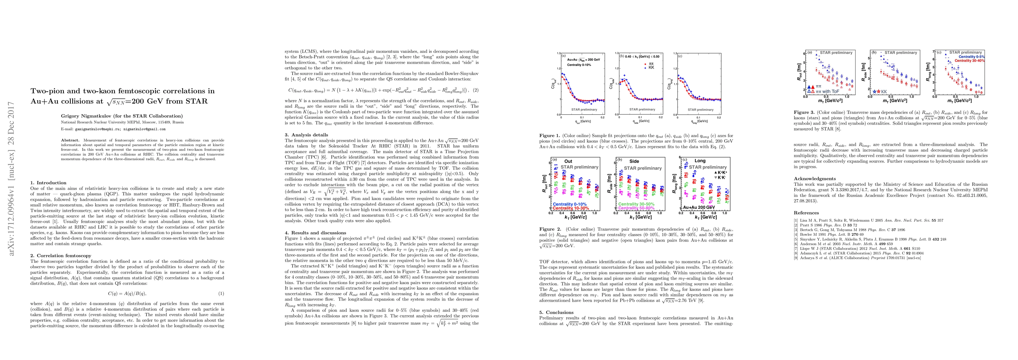 Measurement of femtoscopic correlations in heavy-ion collisions can provide information about spatial and temporal parameters of the particle emission region at kinetic freeze-out. In this work we present the measurement of two-pion and two-kaon femtoscopic correlations in 200 GeV Au+Au collisions at RHIC. The collision centrality and transverse momentum dependence of the three-dimensional radii, $R_{out}$, $R_{side}$ and $R_{long}$ is discussed.