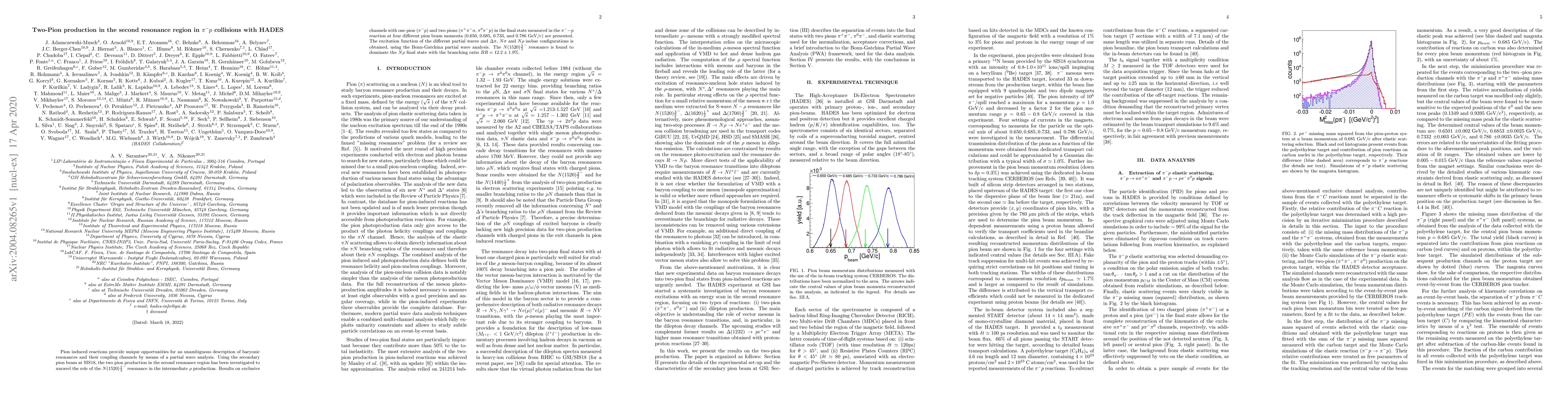 Pion induced reactions provide unique opportunities for an unambiguous description of baryonic resonances and their coupling channels by means of a partial wave analysis. Using the secondary pion beam at SIS18, the two pion production in the second resonance region has been investigated to unravel the role of the $N(1520) \frac{3}{2}^-$ resonance in the intermediate $\rho$ production. Results on exclusive channels with one pion ($\pi^{-}p$) and two pions ($\pi^{+}\pi^{-}n$, $\pi^{0}\pi^{-}p$) in the final state measured in the $\pi^{-}-p$ reaction at four different pion beam momenta (0.650, 0.685, 0.733, and 0.786 GeV/c) are presented. The excitation function of the different partial waves and $\Delta\pi$, $N\sigma$ and $N\rho$ isobar configurations is obtained, using the Bonn-Gatchina partial wave analysis. The $N(1520) \frac{3}{2}^-$ resonance is found to dominate the $N\rho$ final state with the branching ratio $BR=12.2 \pm 1.9\%$.