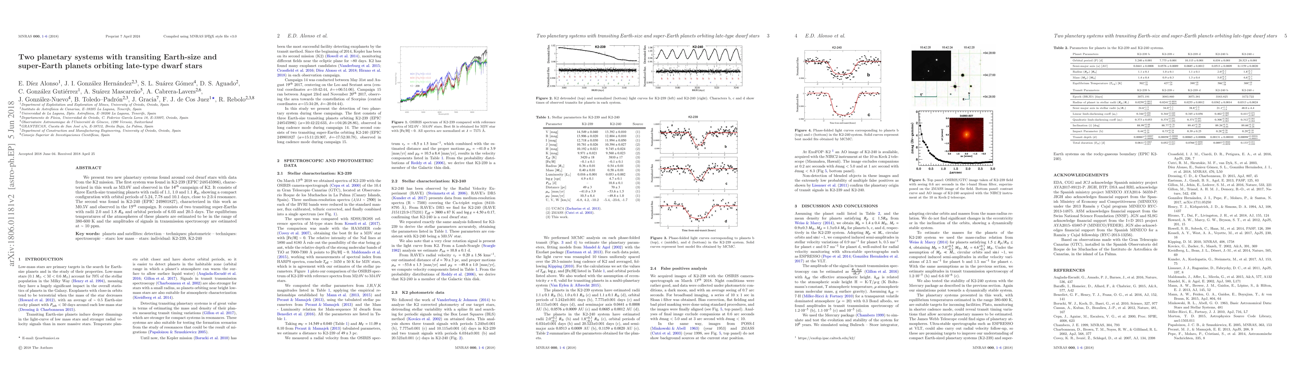 This research identifies two new planetary systems using K2 mission data, revealing three Earth-sized planets in a close resonance in the first system and two super-Earths in the second, both orbiting late-type dwarf stars. The planets' equilibrium temperatures range from 380-600 K.