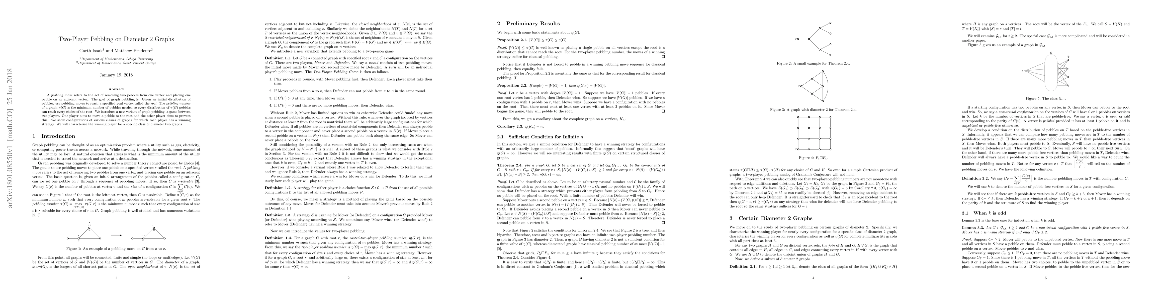 This research explores a two-player pebbling game on diameter 2 graphs where one player tries to move a pebble to a root while the other aims to prevent this. The study characterizes the winning player for various graph configurations within this class.