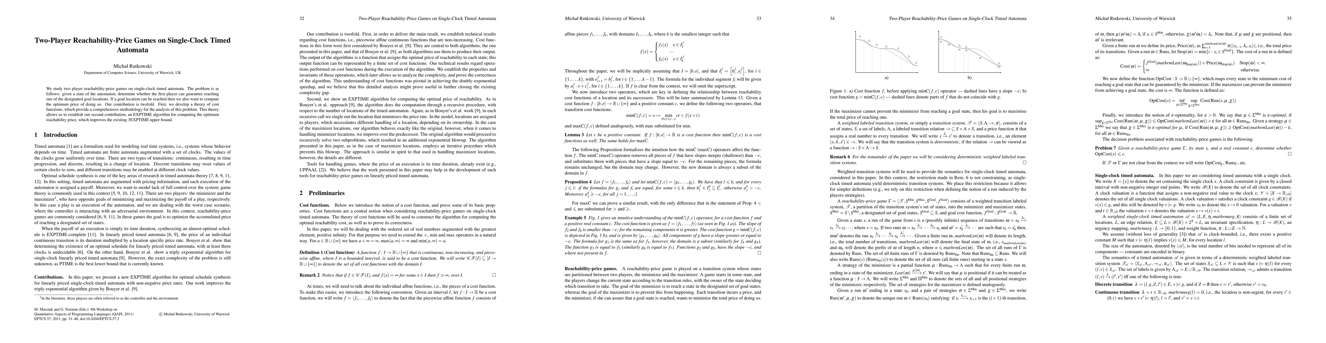 This paper develops a theory of cost functions for analyzing two-player reachability-price games on single-clock timed automata. It presents an EXPTIME algorithm for determining the optimal price for reaching designated goal locations, improving upon the existing 3EXPTIME upper bound.