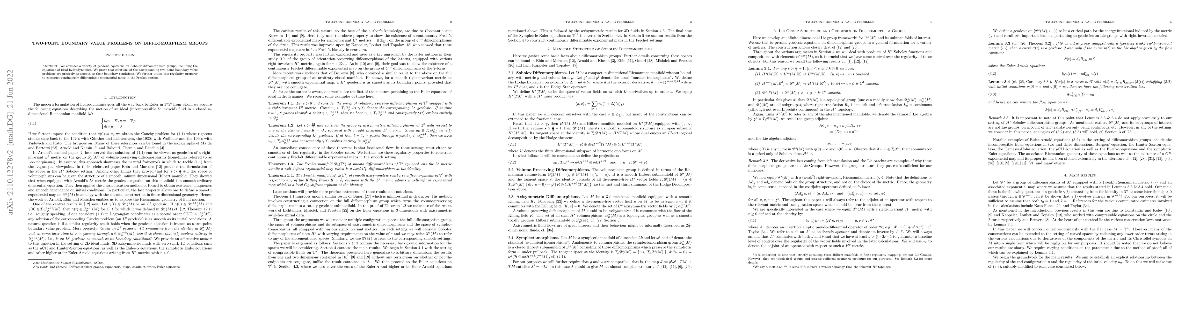 This paper investigates geodesic equations on Sobolev diffeomorphism groups, proving that solutions to two-point boundary value problems match the smoothness of their boundary conditions. It also constructs continuously differentiable exponential maps in the Fréchet setting.