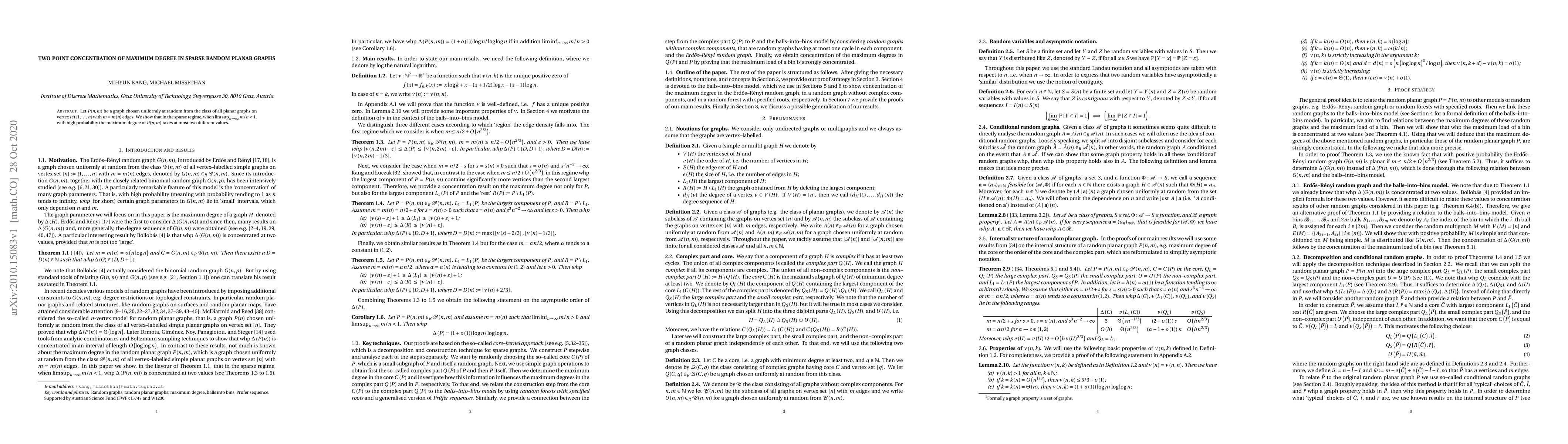 Summary: This paper demonstrates that in sparse random planar graphs, where the number of edges grows slower than the number of vertices, the maximum degree is highly concentrated, with high probability taking on only two distinct values. This reveals a surprising regularity in the degree distribution of such graphs.