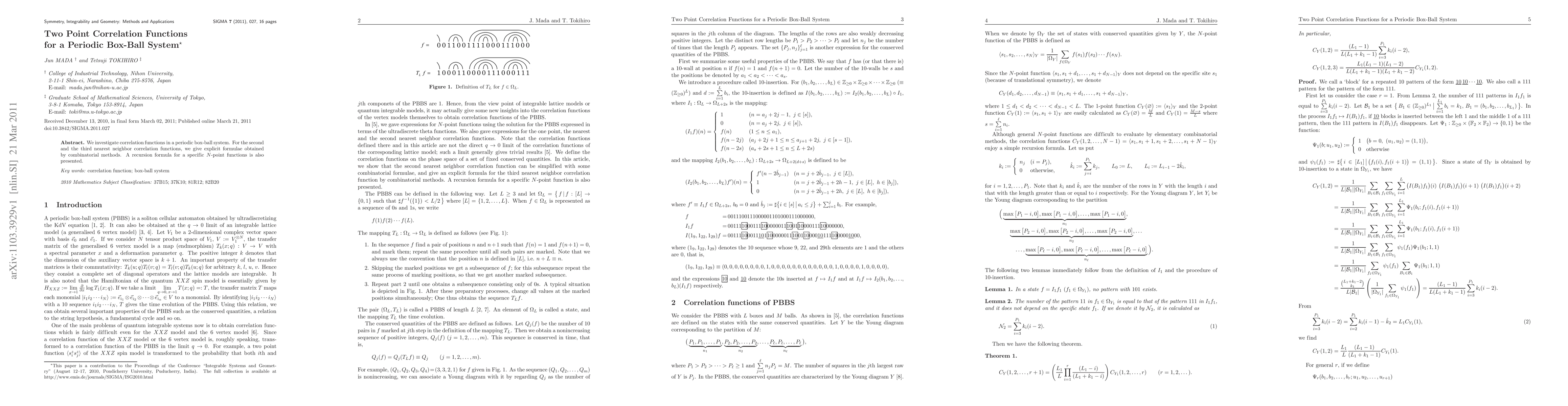 We investigate correlation functions in a periodic box-ball system. For the second and the third nearest neighbor correlation functions, we give explicit formulae obtained by combinatorial methods. A recursion formula for a specific $N$-point functions is also presented.