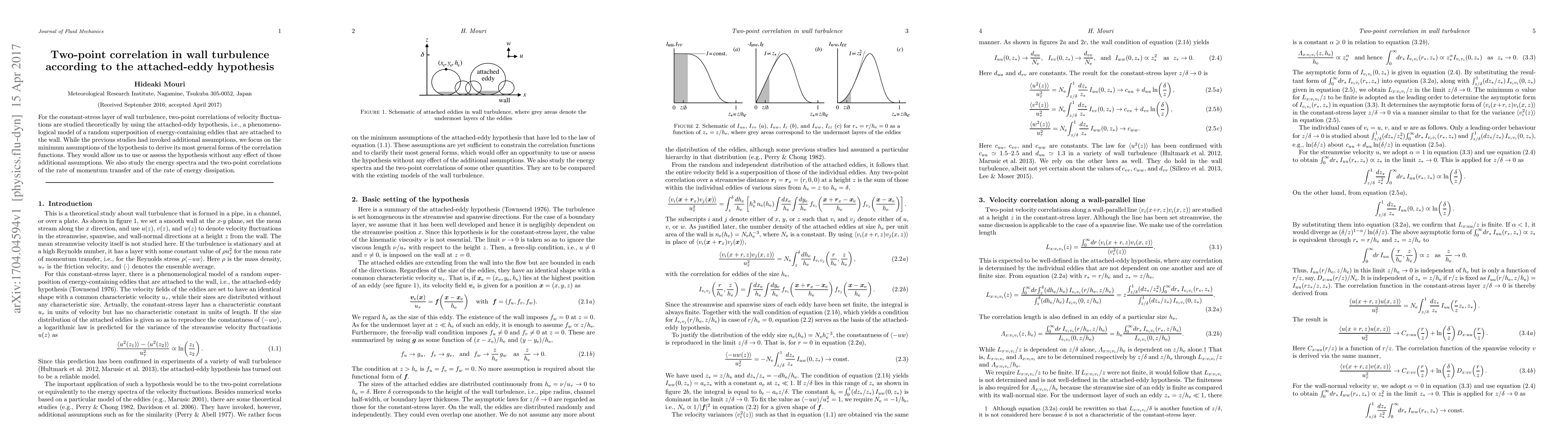Researchers used the attached-eddy hypothesis to study wall turbulence, deriving general forms of two-point correlations and energy spectra without additional assumptions. Their findings provide a fundamental understanding of turbulence behavior.