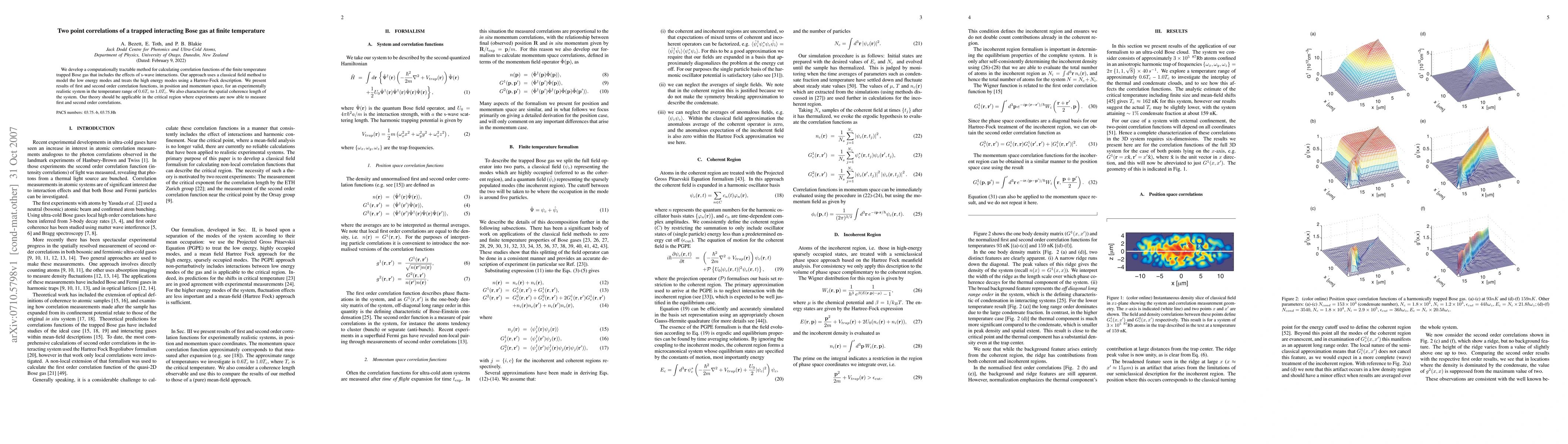 This paper presents a method to calculate correlation functions for a trapped Bose gas at finite temperatures, incorporating s-wave interactions. It uses a classical field method for low energy modes and Hartree-Fock for high energy modes, providing results for first and second order correlation functions and spatial coherence length in the temperature range of $0.6T_c$ to $1.0T_c$.