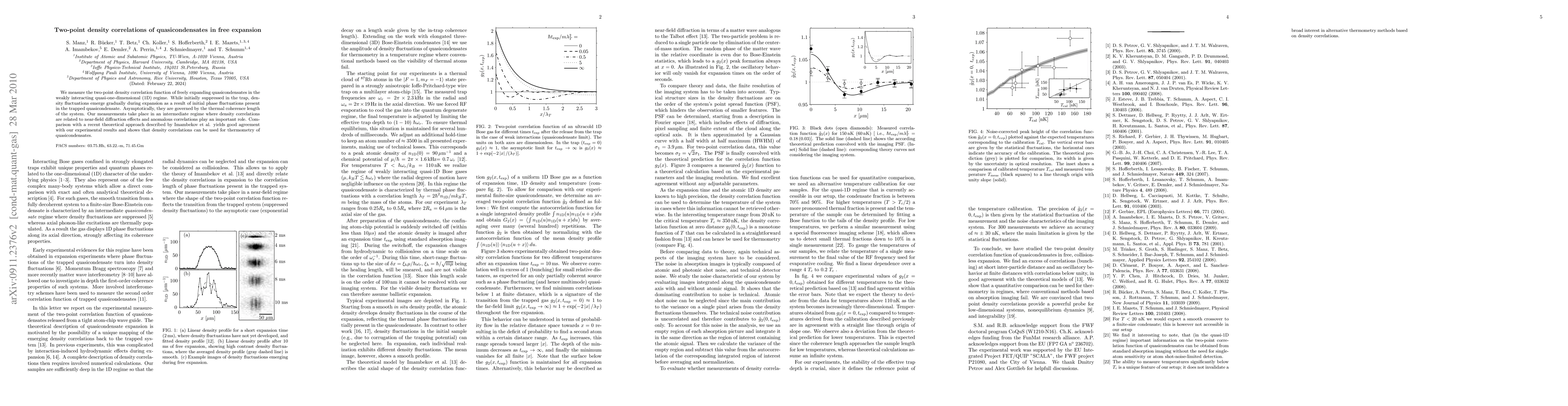 Researchers measured density correlations in freely expanding quasicondensates, finding that initial phase fluctuations lead to gradual emergence of density fluctuations, which eventually follow the thermal coherence length of the system.