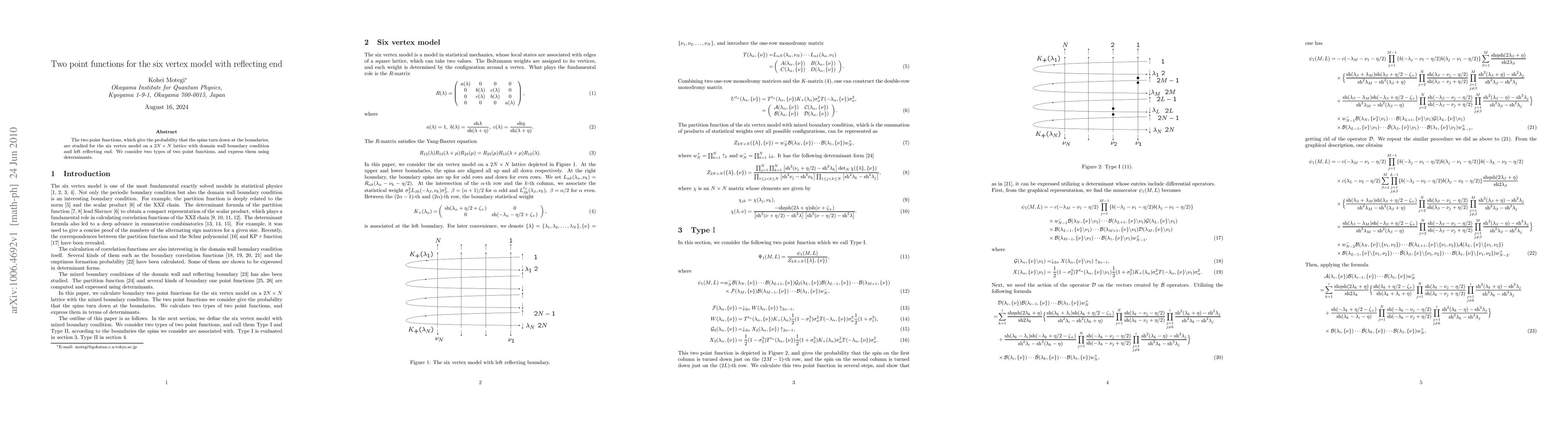 Summary: This paper investigates the two point functions in the six vertex model on a $2N \times N$ lattice with domain wall boundary conditions and a left reflecting end, expressing these functions using determinants to determine the probability of spins turning down at the boundaries.
