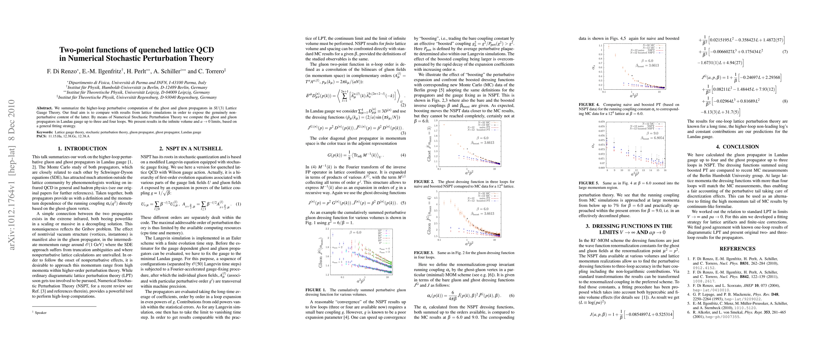 We summarize the higher-loop perturbative computation of the ghost and gluon propagators in SU(3) Lattice Gauge Theory. Our final aim is to compare with results from lattice simulations in order to expose the genuinely non-perturbative content of the latter. By means of Numerical Stochastic Perturbation Theory we compute the ghost and gluon propagators in Landau gauge up to three and four loops. We present results in the infinite volume and $a \to 0$ limits, based on a general fitting strategy.