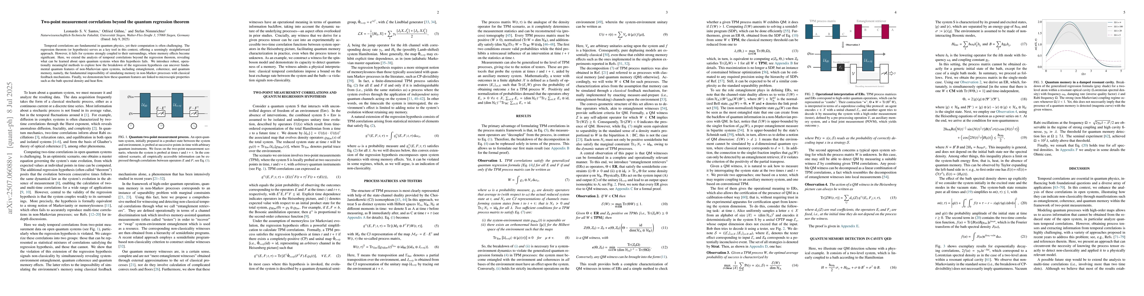 Temporal correlations are fundamental in quantum physics, yet their computation is often challenging. The regression theorem (or hypothesis) serves as a key tool in this context, offering a seemingly straightforward approach. However, it fails for systems strongly coupled to their surroundings, where memory effects become significant. Here, we extend the analysis of temporal correlations beyond the regression theorem, revealing what can be learned about open quantum systems when this hypothesis fails. We introduce robust, operationally meaningful methods to explore how the breakdown of the regression hypothesis can uncover fundamental quantum features of non-Markovian open systems, including entanglement, coherence, and quantum memory, namely, the fundamental impossibility of simulating memory in non-Markov processes with classical feedback mechanisms. Finally, we demonstrate how these quantum features are linked to microscopic properties such as the bath spectral density and heat flow.