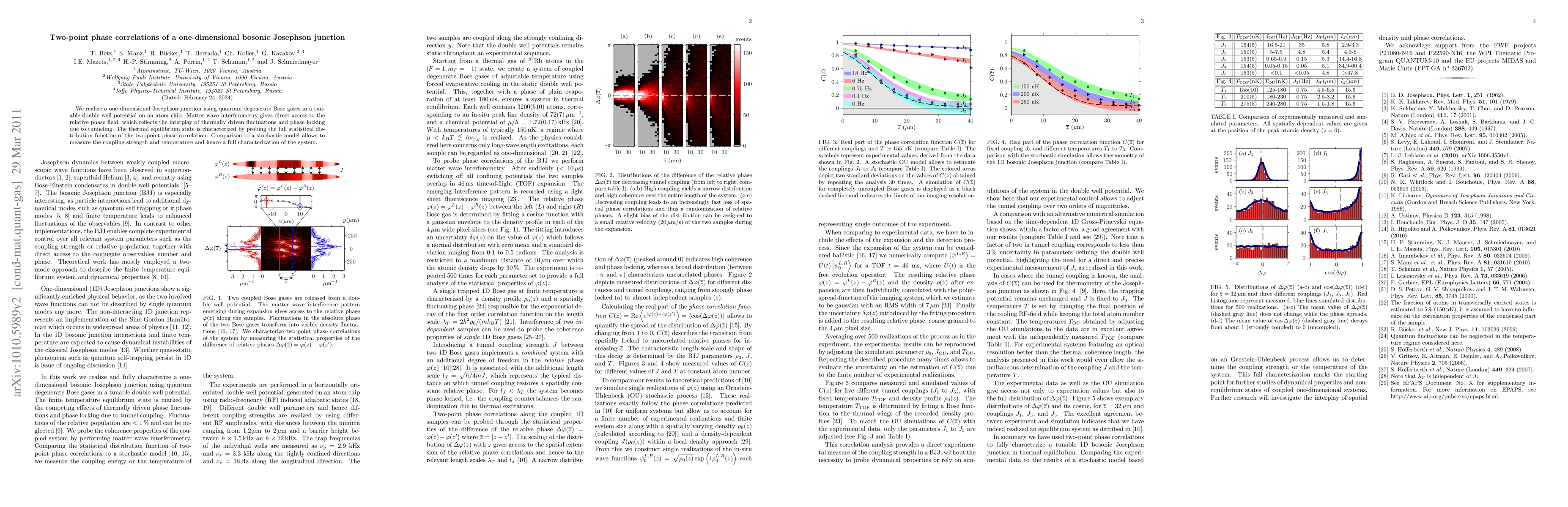 We realize a one-dimensional Josephson junction using quantum degenerate Bose gases in a tunable double well potential on an atom chip. Matter wave interferometry gives direct access to the relative phase field, which reflects the interplay of thermally driven fluctuations and phase locking due to tunneling. The thermal equilibrium state is characterized by probing the full statistical distribution function of the two-point phase correlation. Comparison to a stochastic model allows to measure the coupling strength and temperature and hence a full characterization of the system.