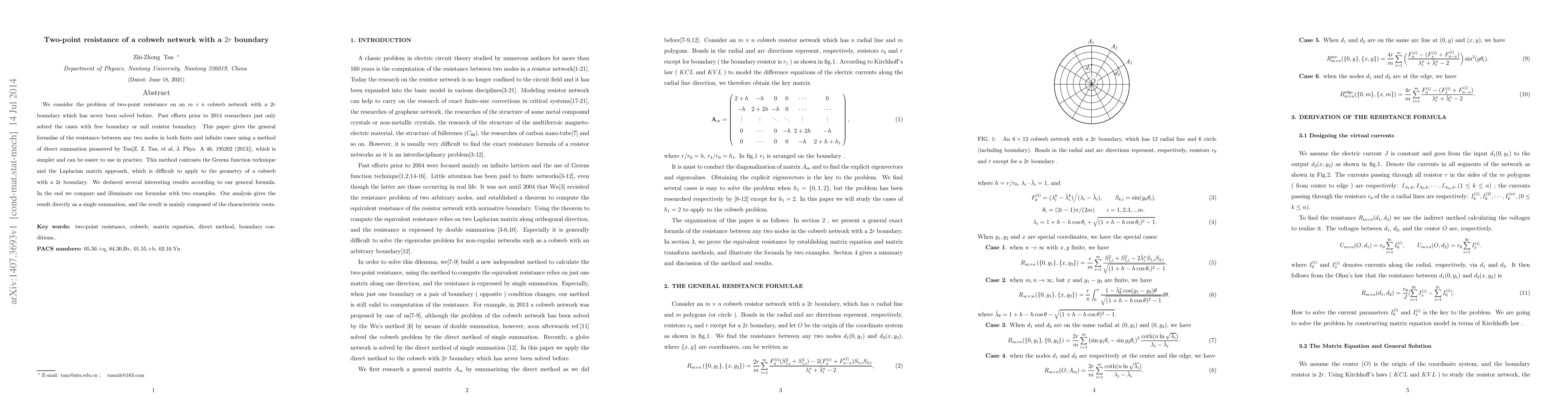 This paper develops a general formula for two-point resistance in cobweb networks with a 2r boundary, simplifying previous methods and providing insights into its behavior.