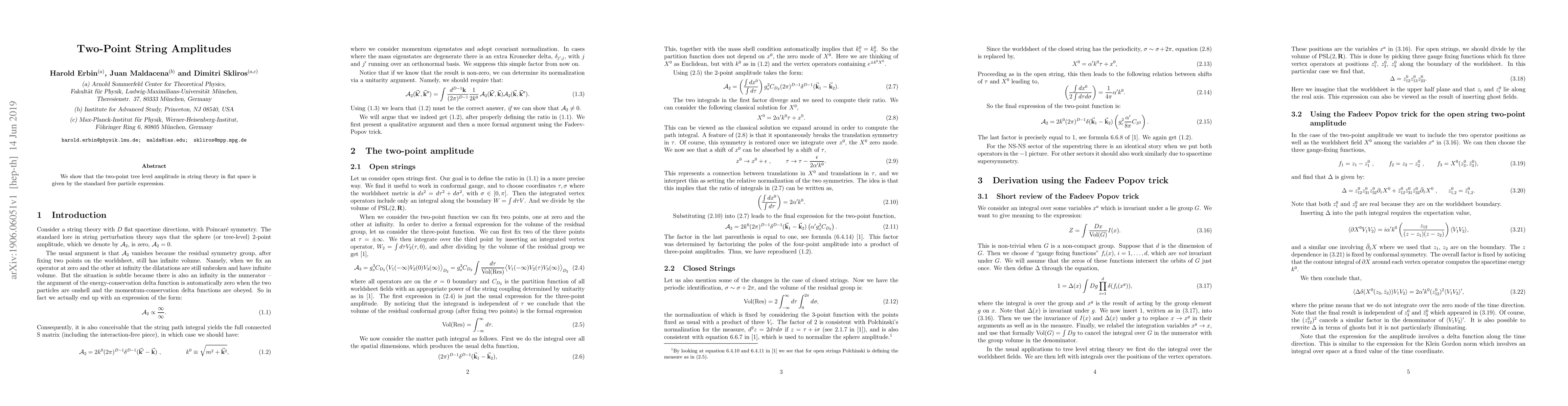 Research confirms that string theory's two-point tree level amplitude is equivalent to the standard free particle expression in flat space.