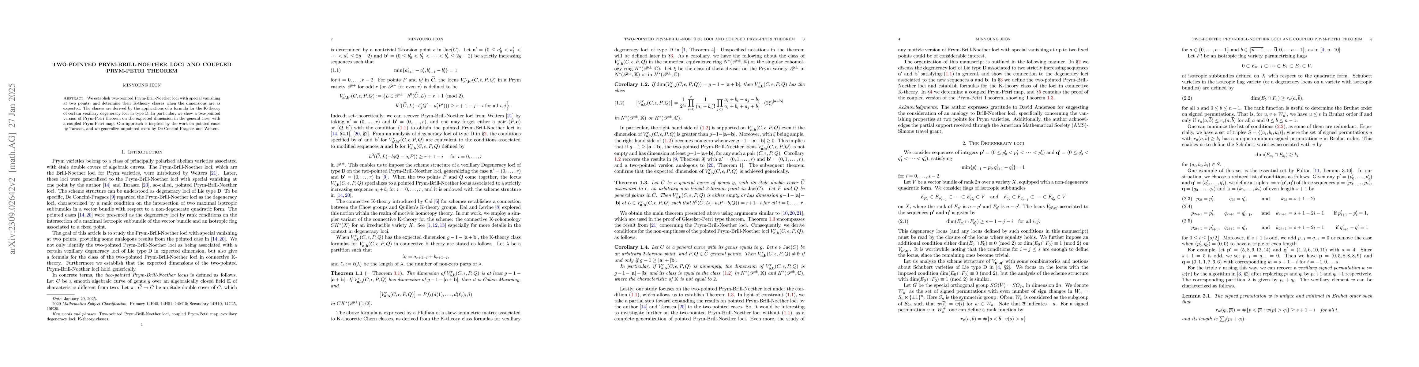 This paper establishes two-pointed Prym-Brill-Noether loci with special vanishing conditions and determines their K-theory classes when dimensions match expectations. It introduces a two-pointed version of the Prym-Petri theorem with a coupled Prym-Petri map, extending prior work on pointed and unpointed cases.