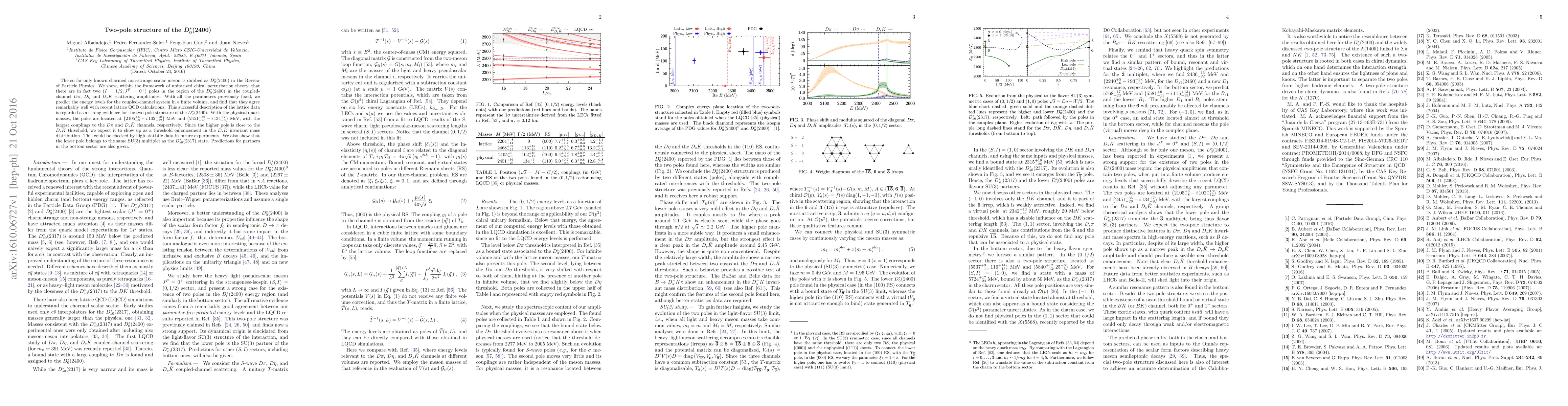 The paper presents a detailed analysis using unitarized chiral perturbation theory to demonstrate the existence of two poles in the $D^\ast_0(2400)$ region, providing a robust description of lattice QCD data.