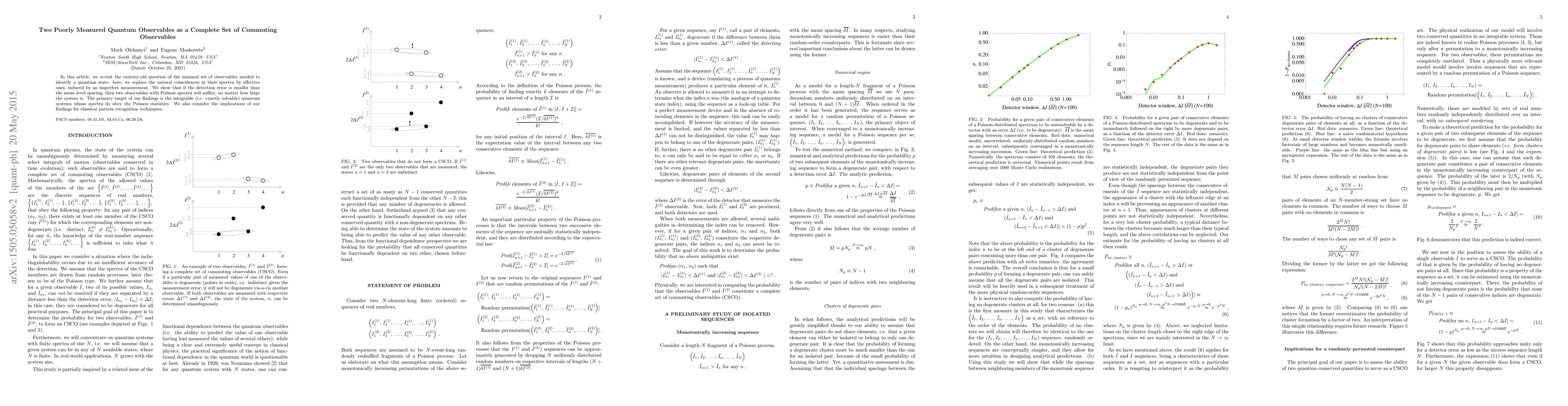 In this article, we revisit the century-old question of the minimal set of observables needed to identify a quantum state: here, we replace the natural coincidences in their spectra by effective ones, induced by an imperfect measurement. We show that if the detection error is smaller than the mean level spacing, then two observables with Poisson spectra will suffice, no matter how large the system is. The primary target of our findings is the integrable (i.e. exactly solvable) quantum systems whose spectra do obey the Poisson statistics. We also consider the implications of our findings for classical pattern recognition techniques.