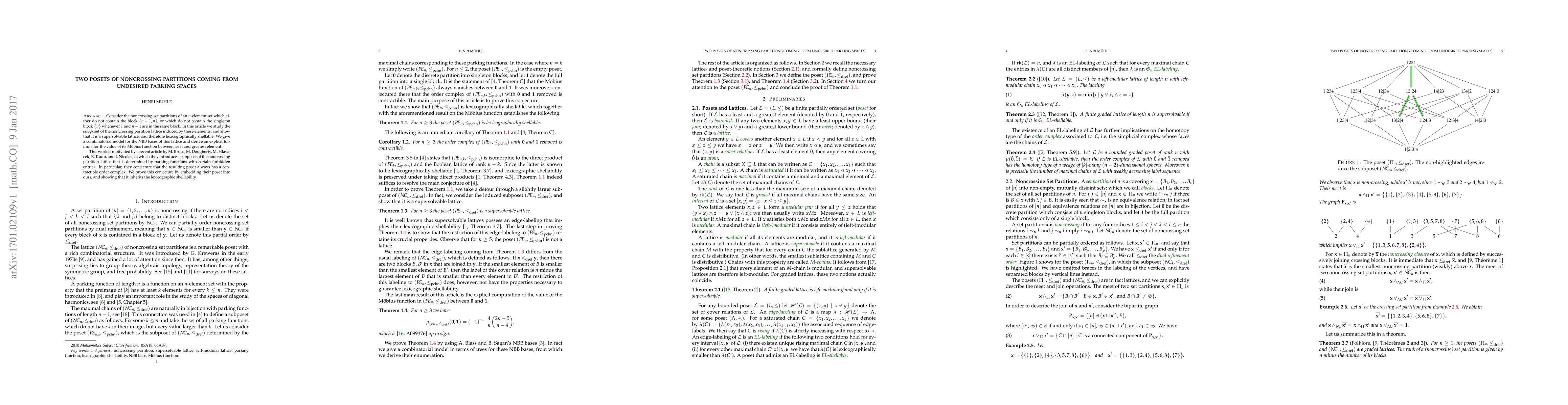 Consider the noncrossing set partitions of an $n$-element set which either do not contain the block $\{n-1,n\}$, or which do not contain the singleton block $\{n\}$ whenever $1$ and $n-1$ are in the same block. In this article we study the subposet of the noncrossing partition lattice induced by these elements, and show that it is a supersolvable lattice, and therefore lexicographically shellable. We give a combinatorial model for the NBB bases of this lattice and derive an explicit formula for the value of its M\"obius function between least and greatest element. This work is motivated by a recent article by M. Bruce, M. Dougherty, M. Hlavacek, R. Kudo, and I. Nicolas, in which they introduce a subposet of the noncrossing partition lattice that is determined by parking functions with certain forbidden entries. In particular, they conjecture that the resulting poset always has a contractible order complex. We prove this conjecture by embedding their poset into ours, and showing that it inherits the lexicographic shellability.