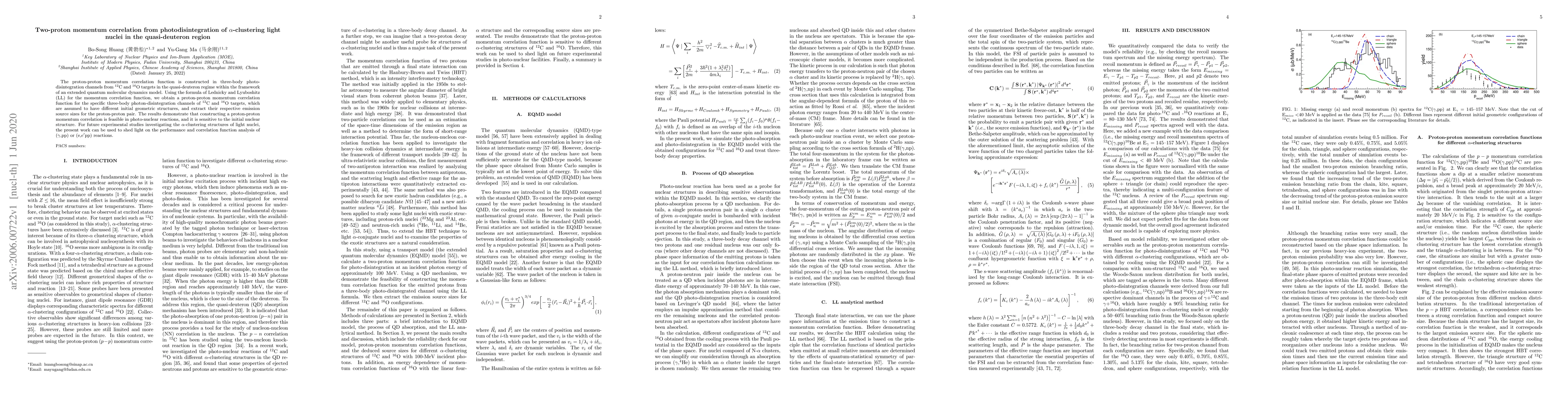The proton-proton momentum correlation function is constructed in three-body photo-disintegration channels from $^{12}$C and $^{16}$O targets in the quasi-deuteron regime within the framework of an extended quantum molecular dynamics model. Using the formula of Lednicky and Lyuboshitz (LL) for the momentum correlation function, we obtain a proton-proton momentum correlation function for the specific three-body photon-disintegration channels of $^{12}$C and $^{16}$O targets, which are assumed to have different initial geometric structures, and extract their respective emission source sizes for the proton-proton pair. The results demonstrate that constructing a proton-proton momentum correlation is feasible in photo-nuclear reactions, and it is sensitive to the initial nuclear structure. For future experimental studies investigating the $\alpha$-clustering structures of light nuclei, the present work can be used to shed light on the performance and correlation function analysis of ($\gamma$,pp) or (e,$e'$pp) reactions.