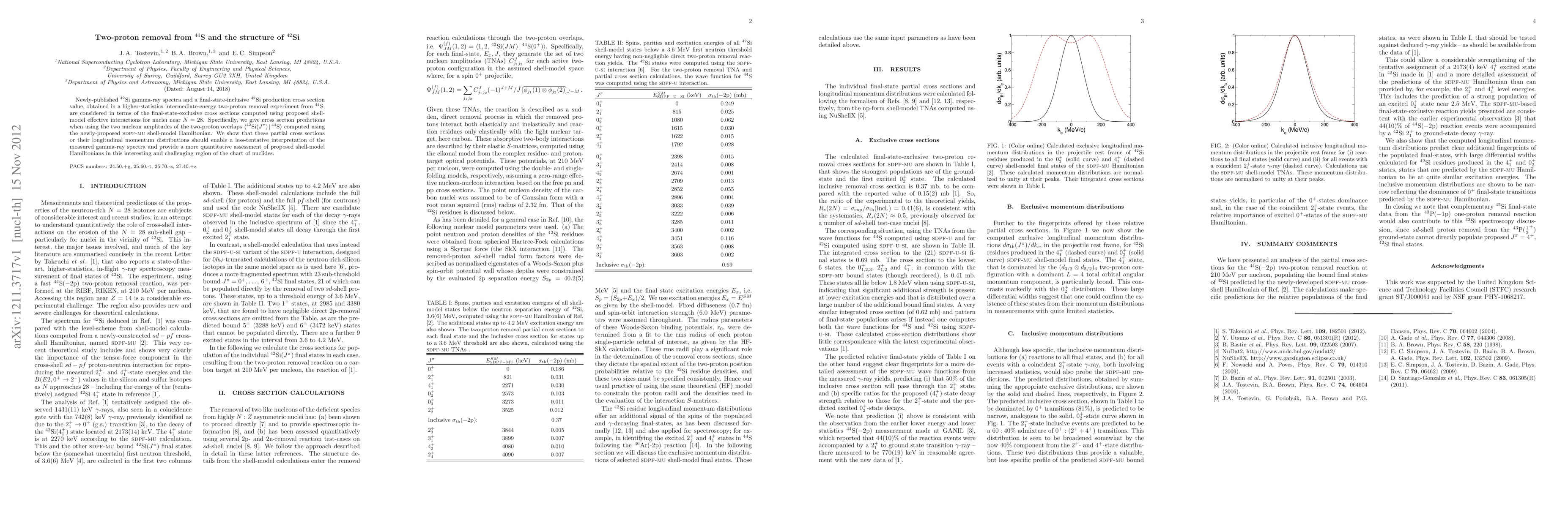 Newly-published $^{42}$Si gamma-ray spectra and a final-state-inclusive $^{42}$Si production cross section value, obtained in a higher-statistics intermediate-energy two-proton removal experiment from $^{44}$S, are considered in terms of the final-state-exclusive cross sections computed using proposed shell-model effective interactions for nuclei near N=28. Specifically, we give cross section predictions when using the two nucleon amplitudes of the two-proton overlaps $<^{42}$Si$ (J^\pi)\,|\,^{44}$S$>$ computed using the newly-proposed {\sc sdpf-mu} shell-model Hamiltonian. We show that these partial cross sections or their longitudinal momentum distributions should enable a less-tentative interpretation of the measured gamma-ray spectra and provide a more quantitative assessment of proposed shell-model Hamiltonians in this interesting and challenging region of the chart of nuclides.