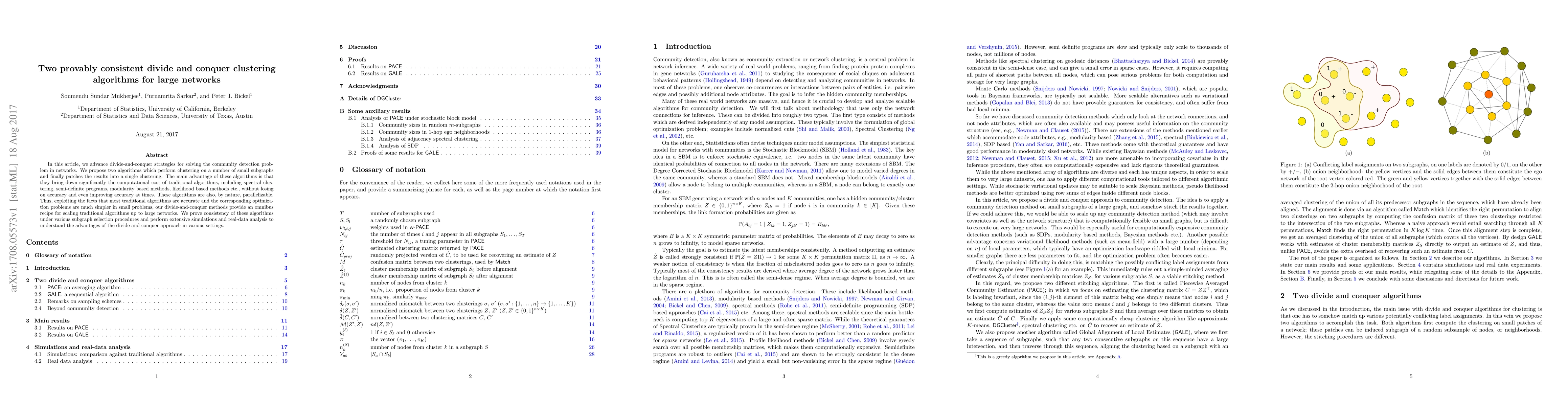 This paper proposes two efficient divide-and-conquer clustering algorithms for large network community detection, significantly reducing computational costs while maintaining or improving accuracy compared to traditional methods. The algorithms are proven consistent and shown to be parallelizable, offering a scalable solution to large network clustering.