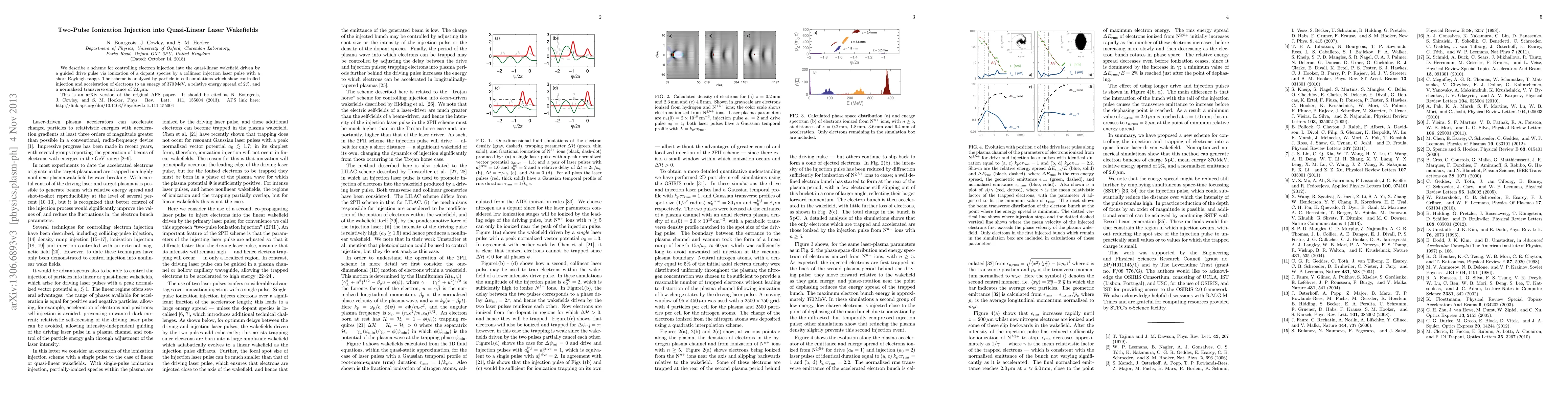 This paper proposes a method for controlling electron injection into quasi-linear laser wakefields using ionization of dopant species by a short injection laser pulse. Simulations demonstrate controlled electron acceleration to 370 MeV with minimal energy spread and low transverse emittance.