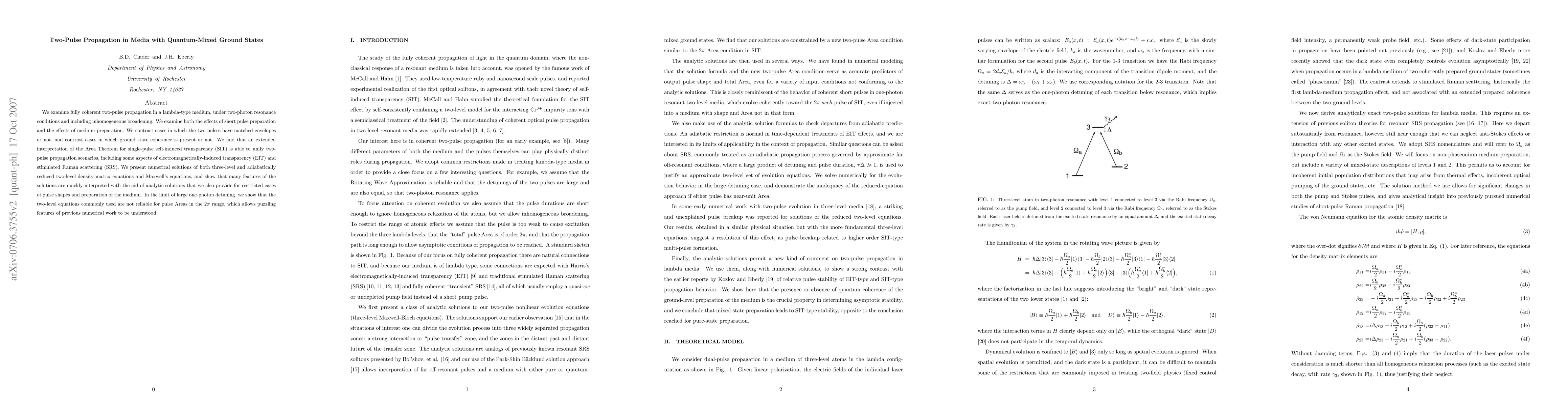 This paper investigates coherent two-pulse propagation in a lambda-type medium under two-photon resonance, highlighting the effects of pulse and medium preparation. It extends the Area Theorem to unify two-pulse scenarios, revealing limitations of traditional two-level equations in large detuning conditions.