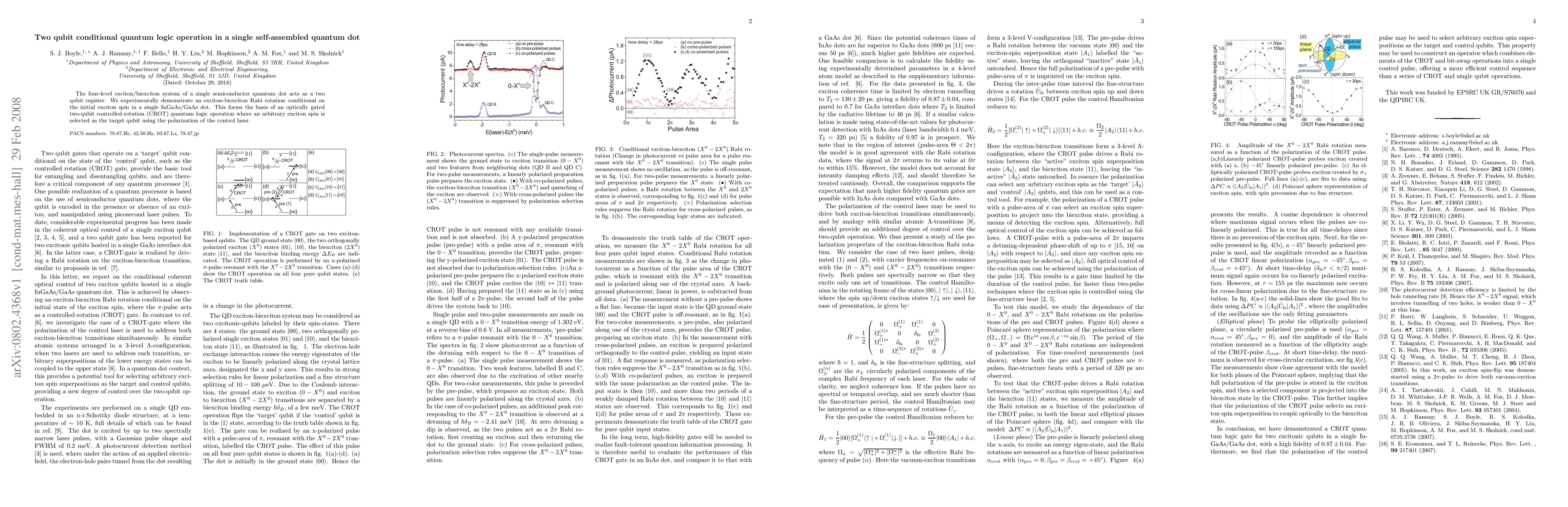 This paper demonstrates a two-qubit controlled-rotation quantum logic operation in a single self-assembled quantum dot using the exciton-biexciton system. The operation is achieved through an exciton-biexciton Rabi rotation conditional on the initial exciton spin, enabling optically gated quantum logic.