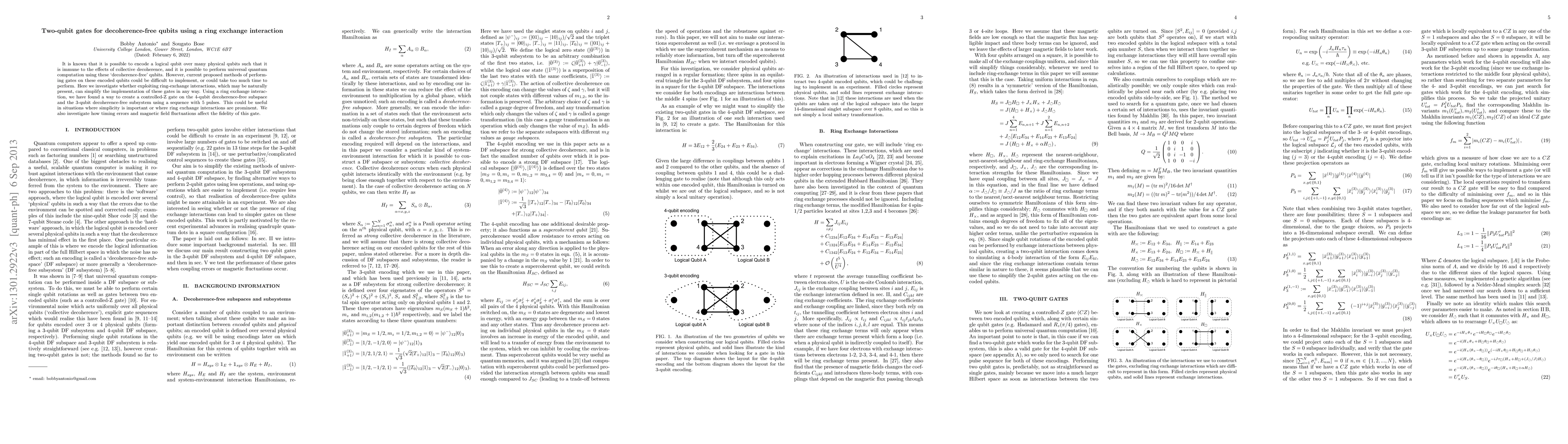 This paper proposes a method for implementing two-qubit gates on decoherence-free qubits using ring-exchange interactions, achieving a controlled-Z gate with a simplified sequence of 5 pulses. It also examines the impact of timing errors and magnetic field fluctuations on gate fidelity.