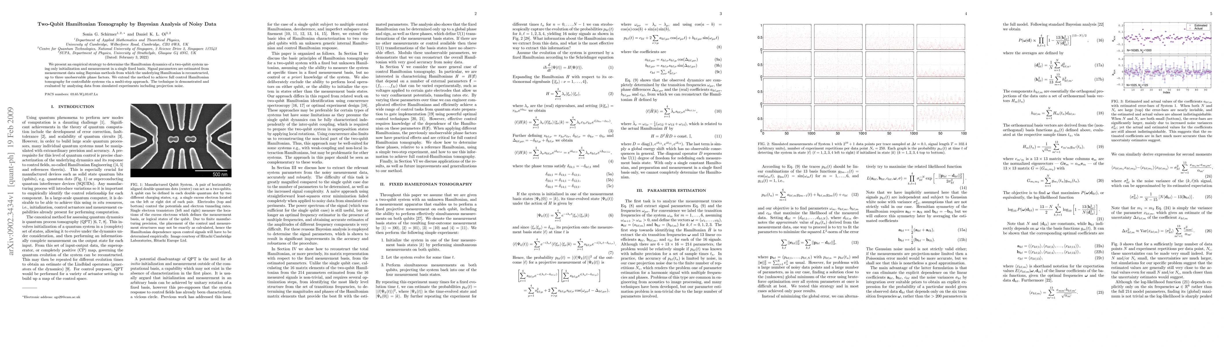 This paper proposes a Bayesian method for reconstructing the Hamiltonian dynamics of a two-qubit system from noisy data, achieving full control Hamiltonian tomography through a multi-step approach, and demonstrates its effectiveness via simulated experiments. The method estimates signal parameters and reconstructs the Hamiltonian, accounting for unobservable phase factors.